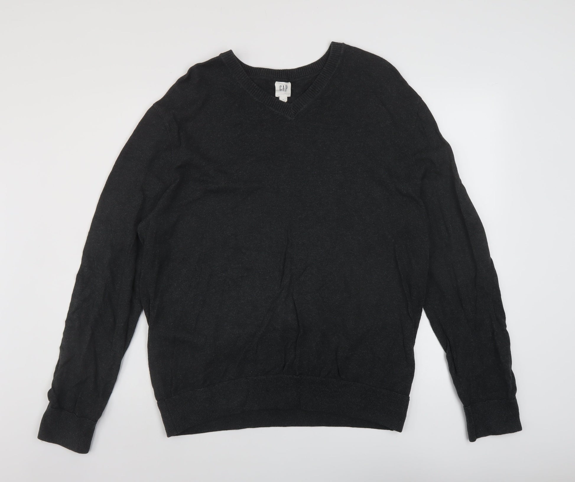 Gap Mens Grey V-Neck Cotton Pullover Jumper Size L Long Sleeve