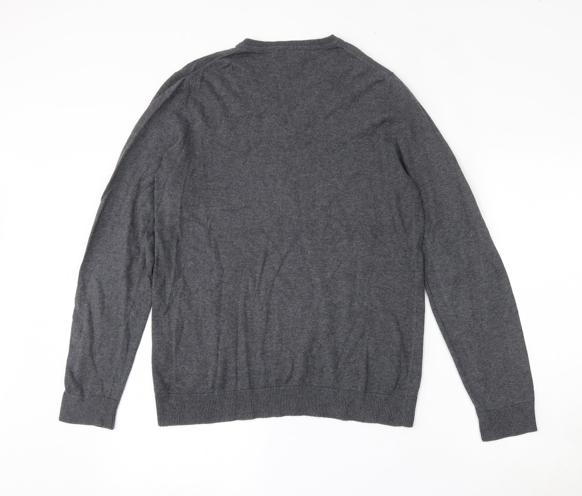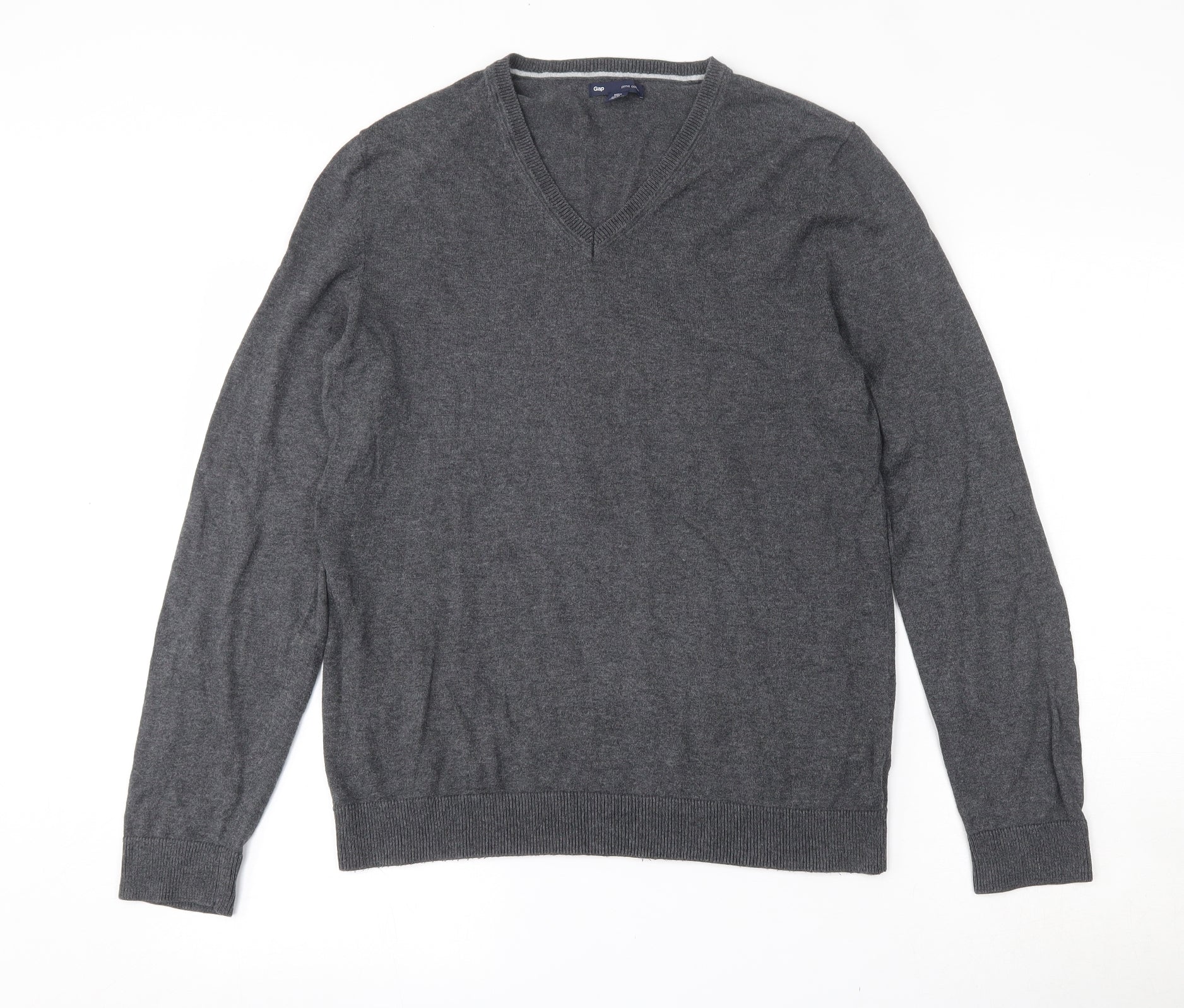 Gap Mens Grey V-Neck Cotton Pullover Jumper Size M