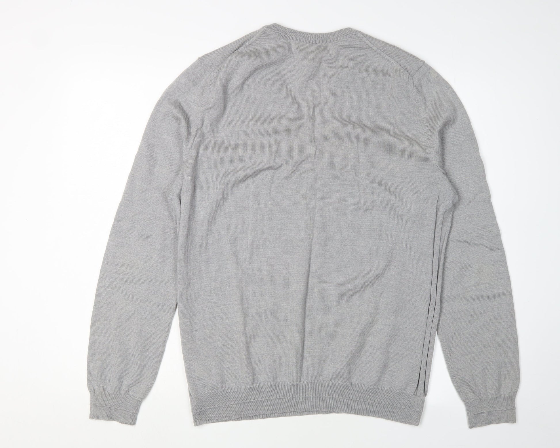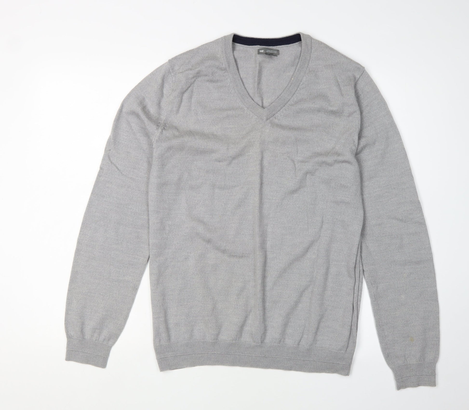 Gap Men's Grey Wool V-Neck Pullover Jumper M