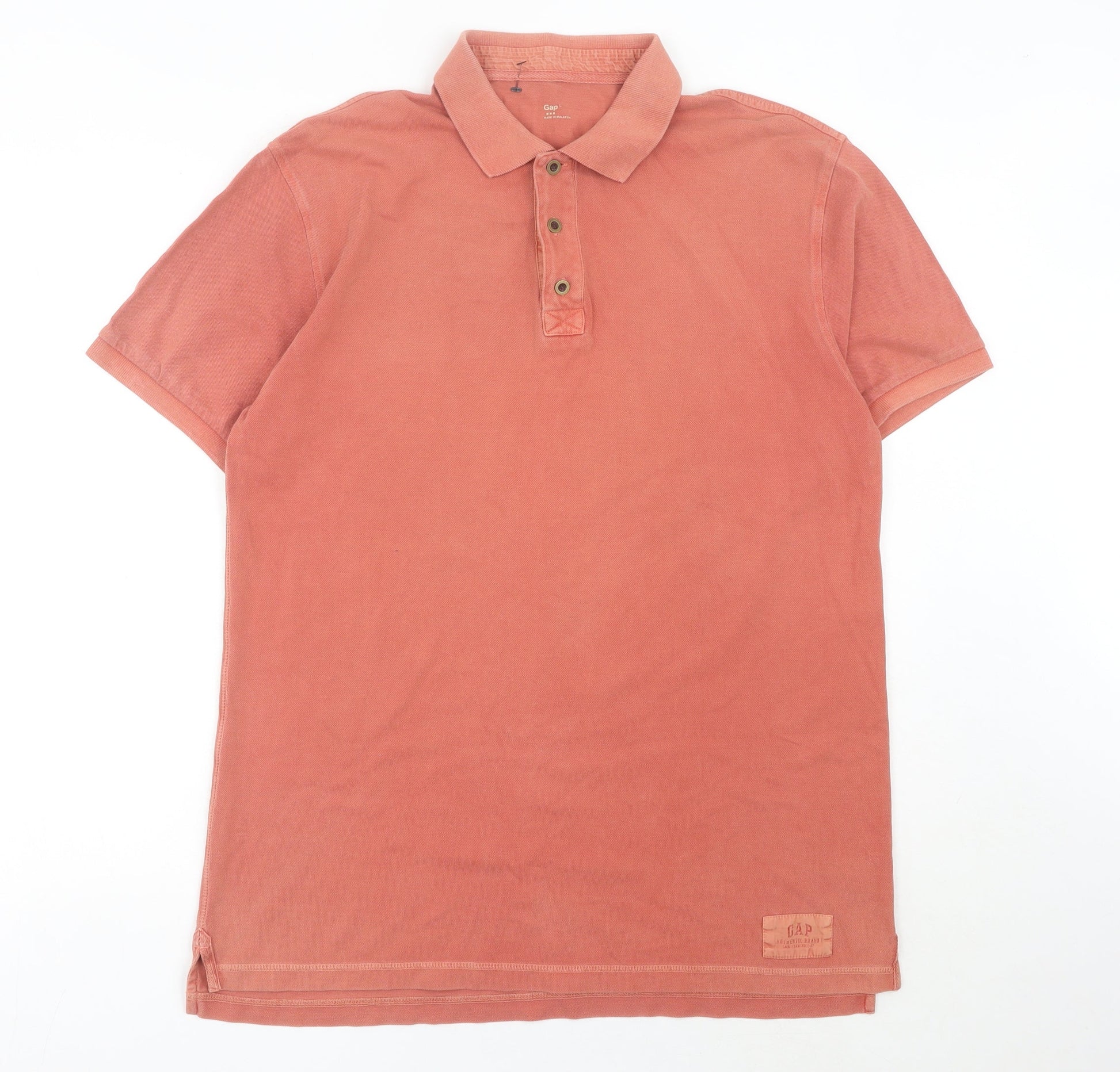 Gap Men's Red Cotton Polo Shirt Size L Regular Fit Short Sleeve