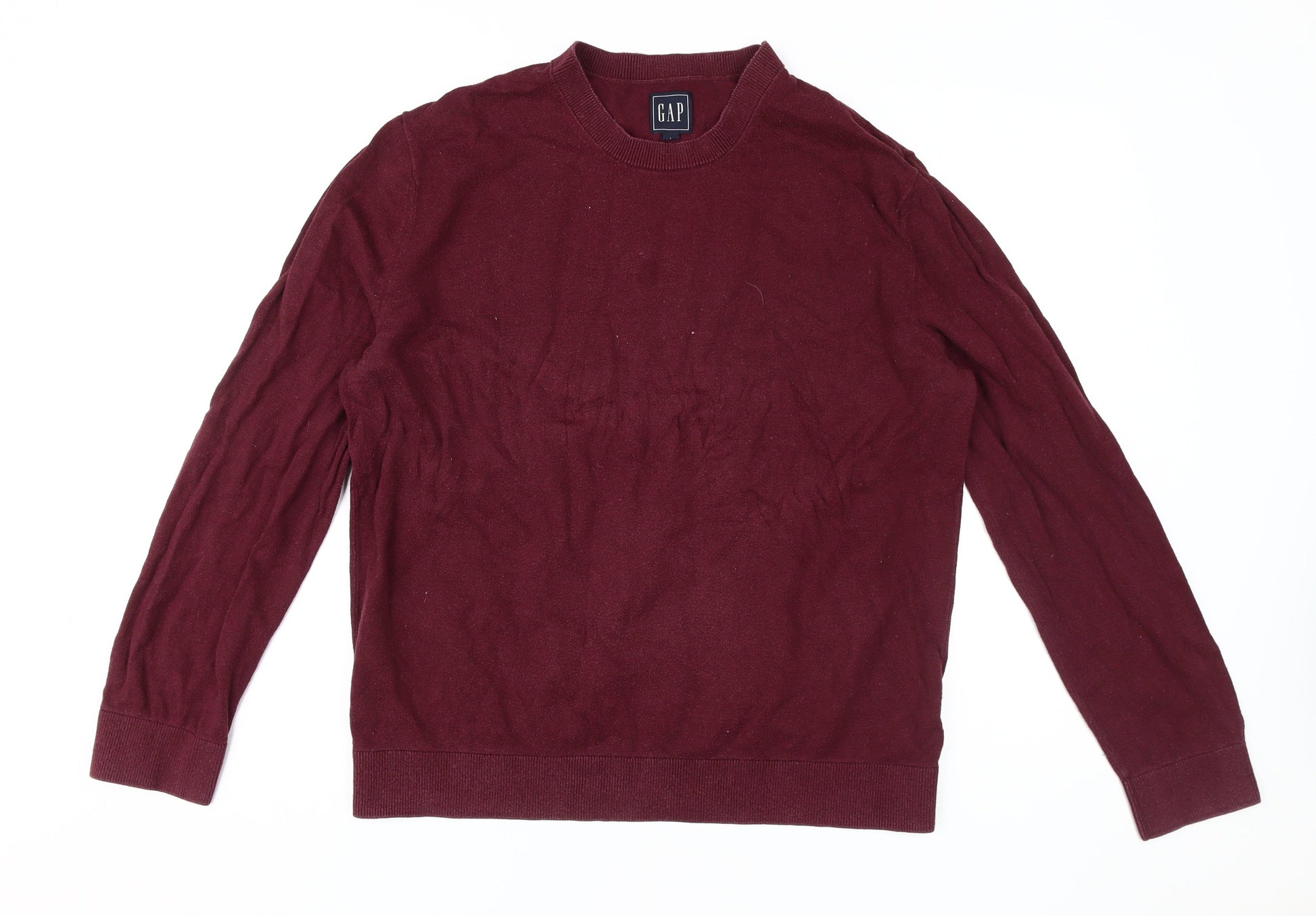GAP Men's Red Pullover Jumper, L, Crew Neck Cotton Knit