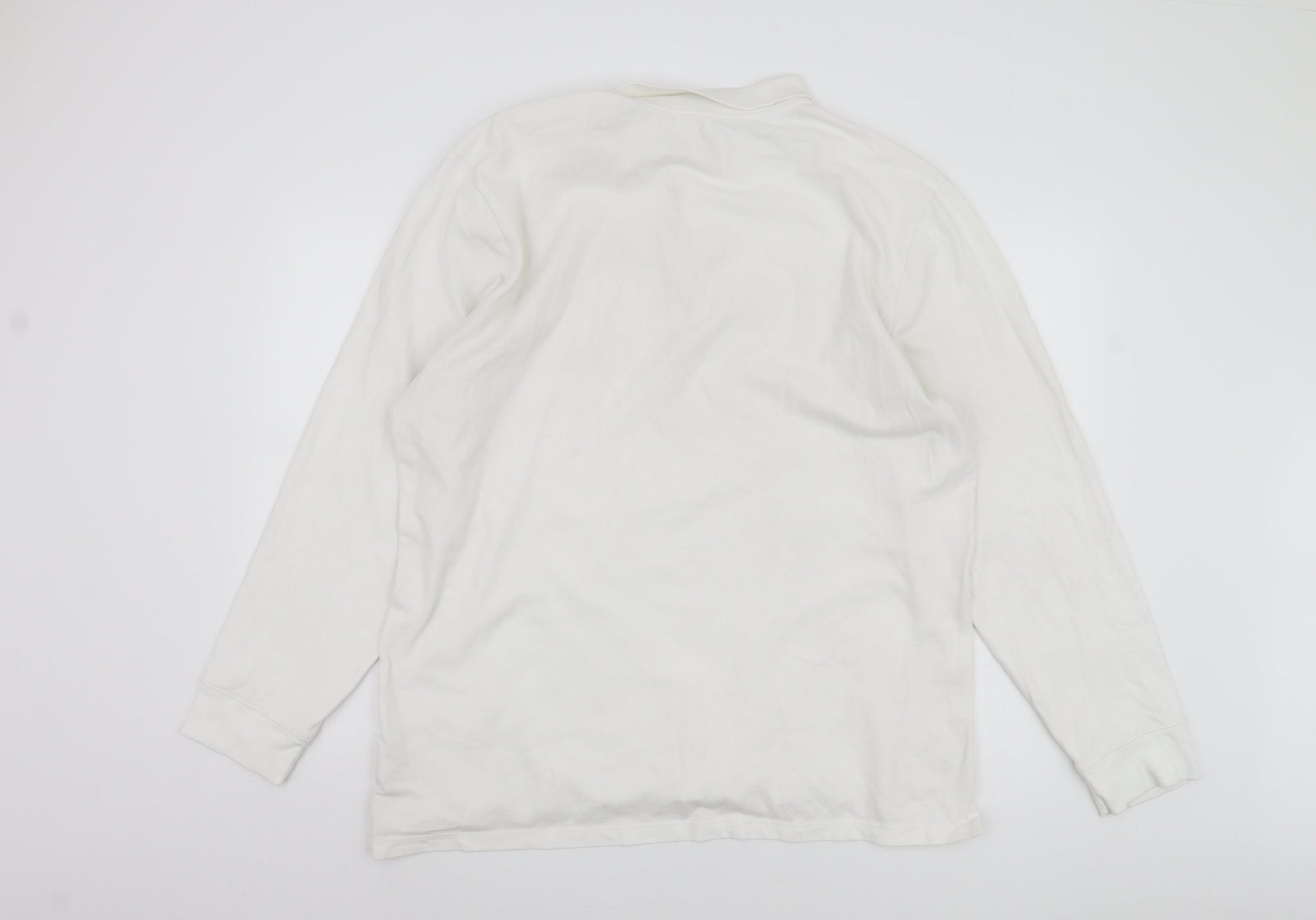 GAP Men's White Long Sleeve Polo - Size XL, Stretch Fit