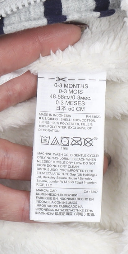 GAP Unisex Baby Grey Striped Hooded Snowsuit 0-3 Months Cotton Lined Zip Footed