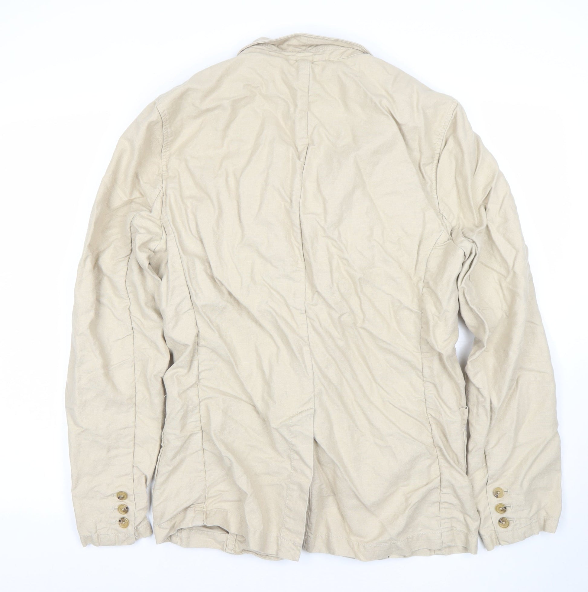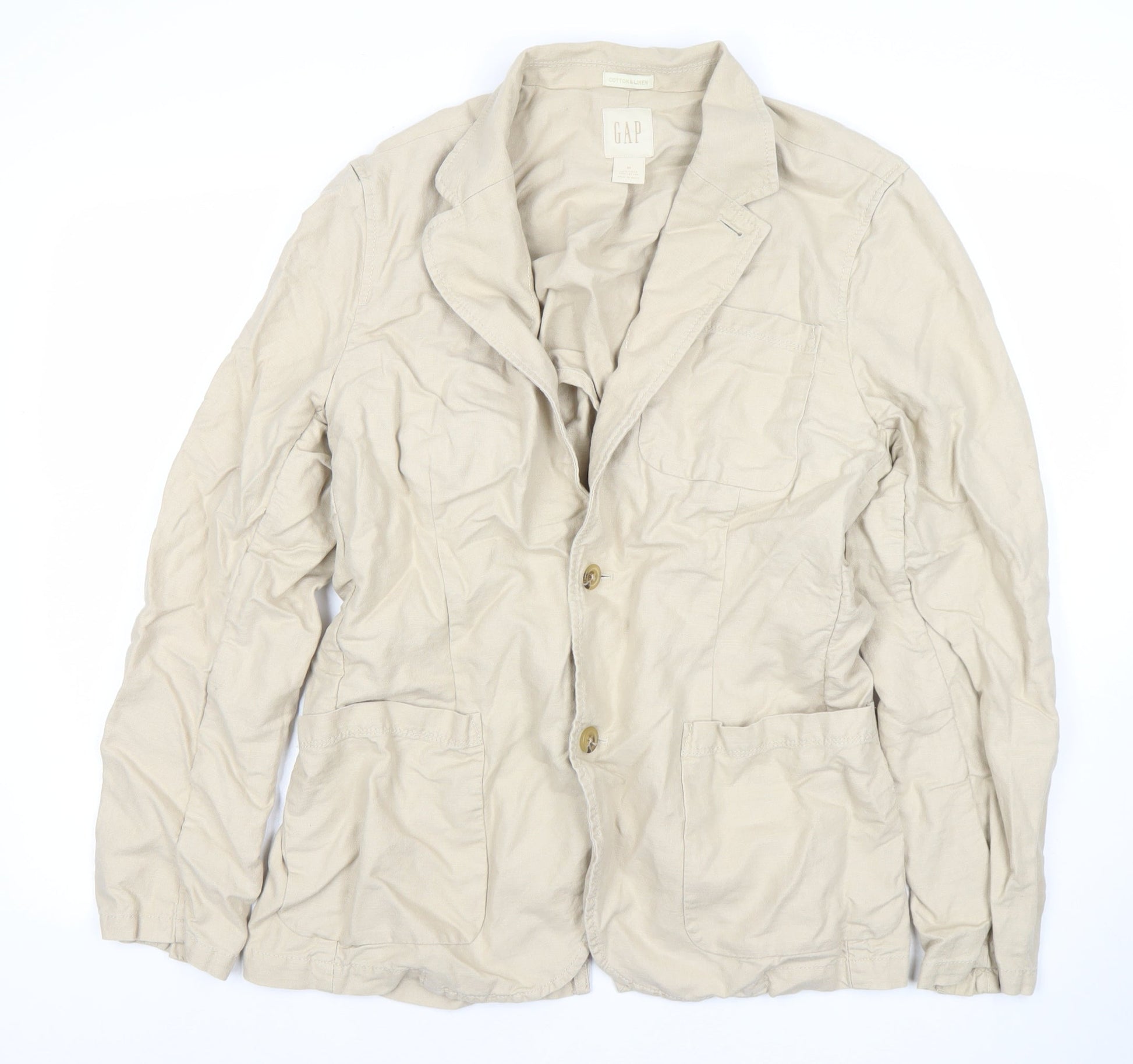 GAP Women Beige Linen Cotton Two-Button Blazer Size M