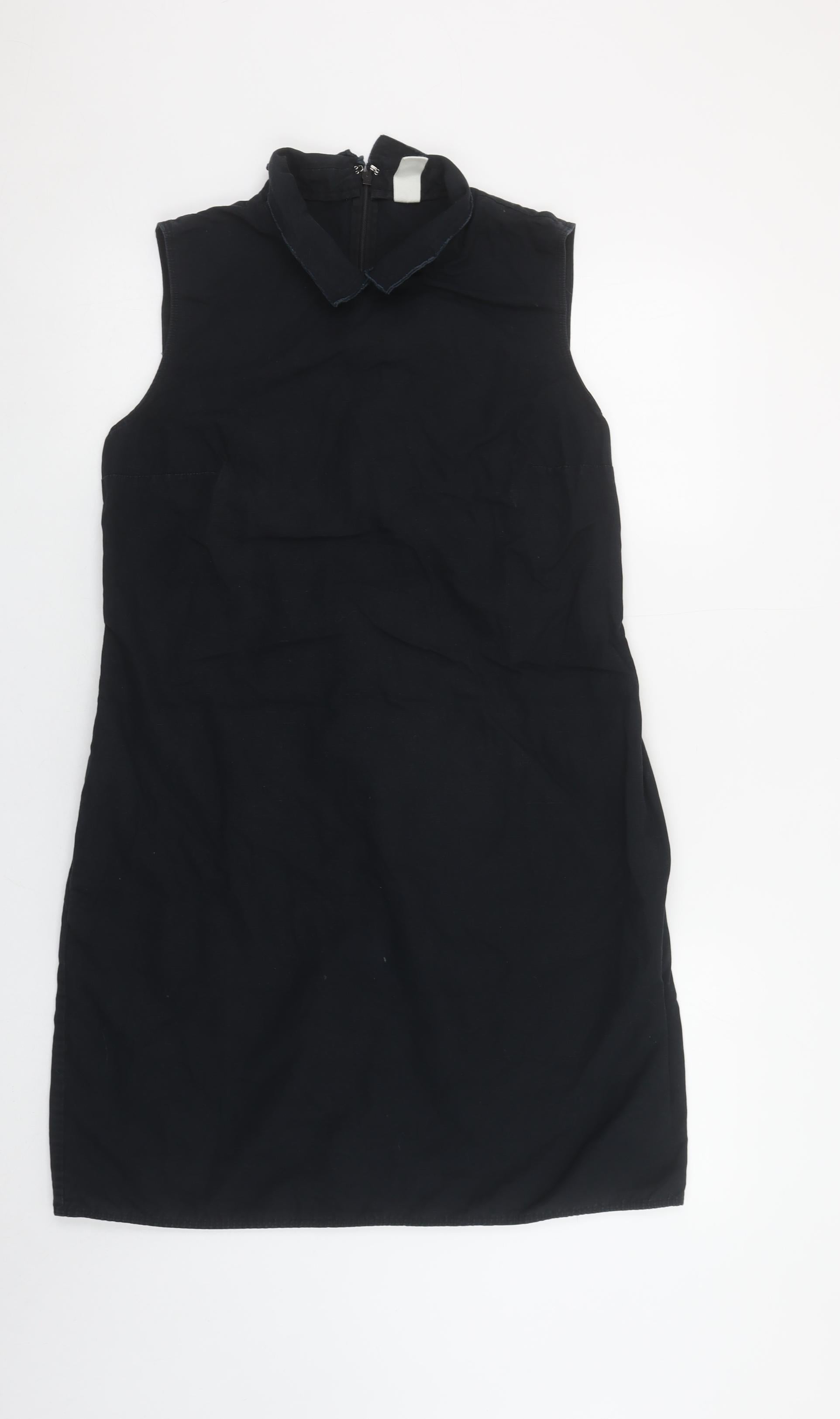GAP Women Black Cotton Linen Collared Sleeveless Shift Dress Size 12