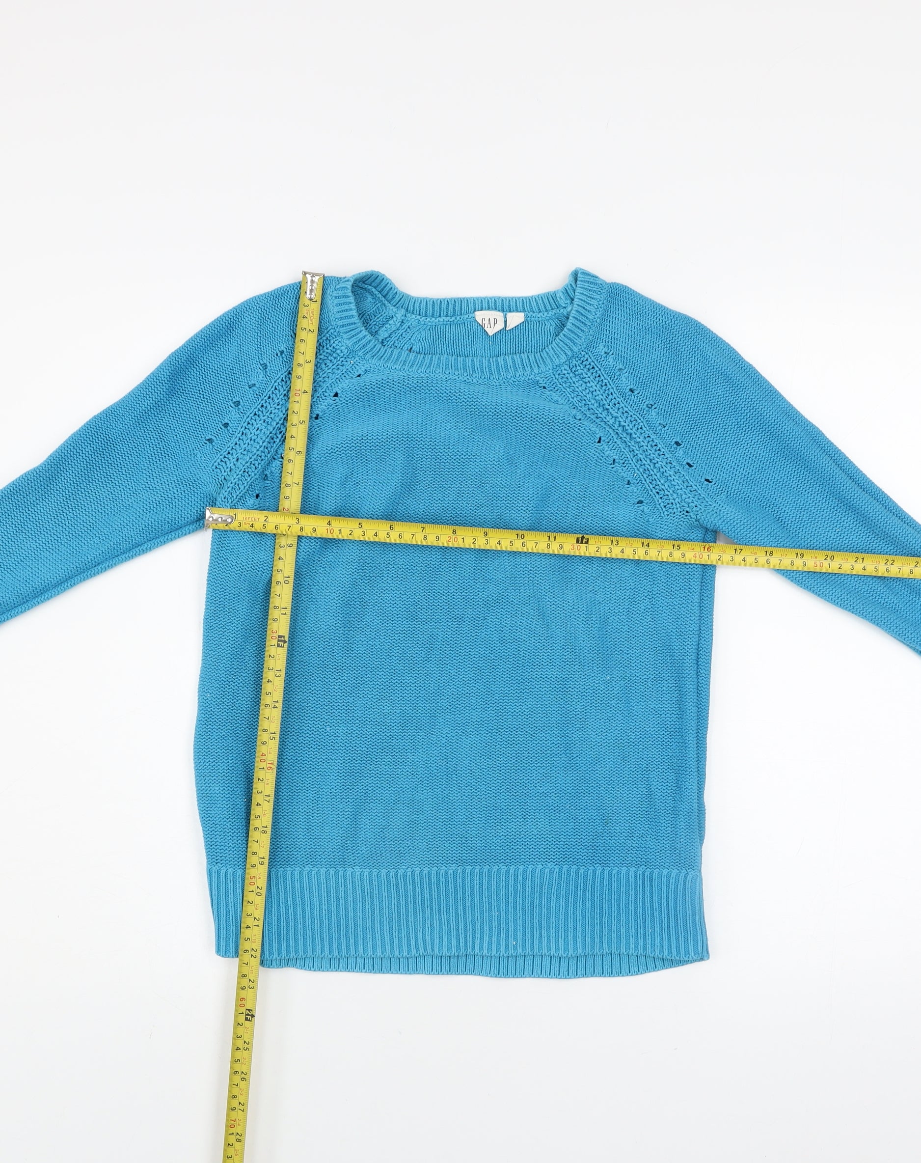 GAP Women Blue Cotton Crew Neck Long Sleeve Pullover Jumper Size S
