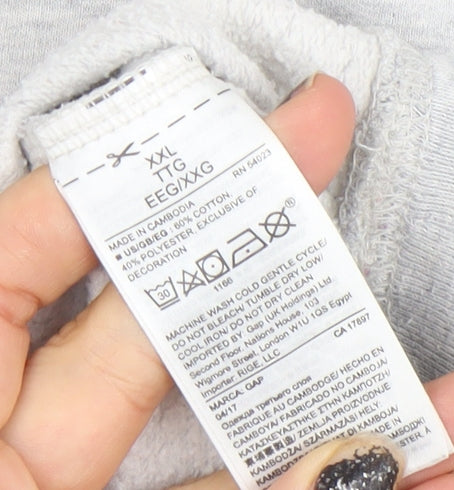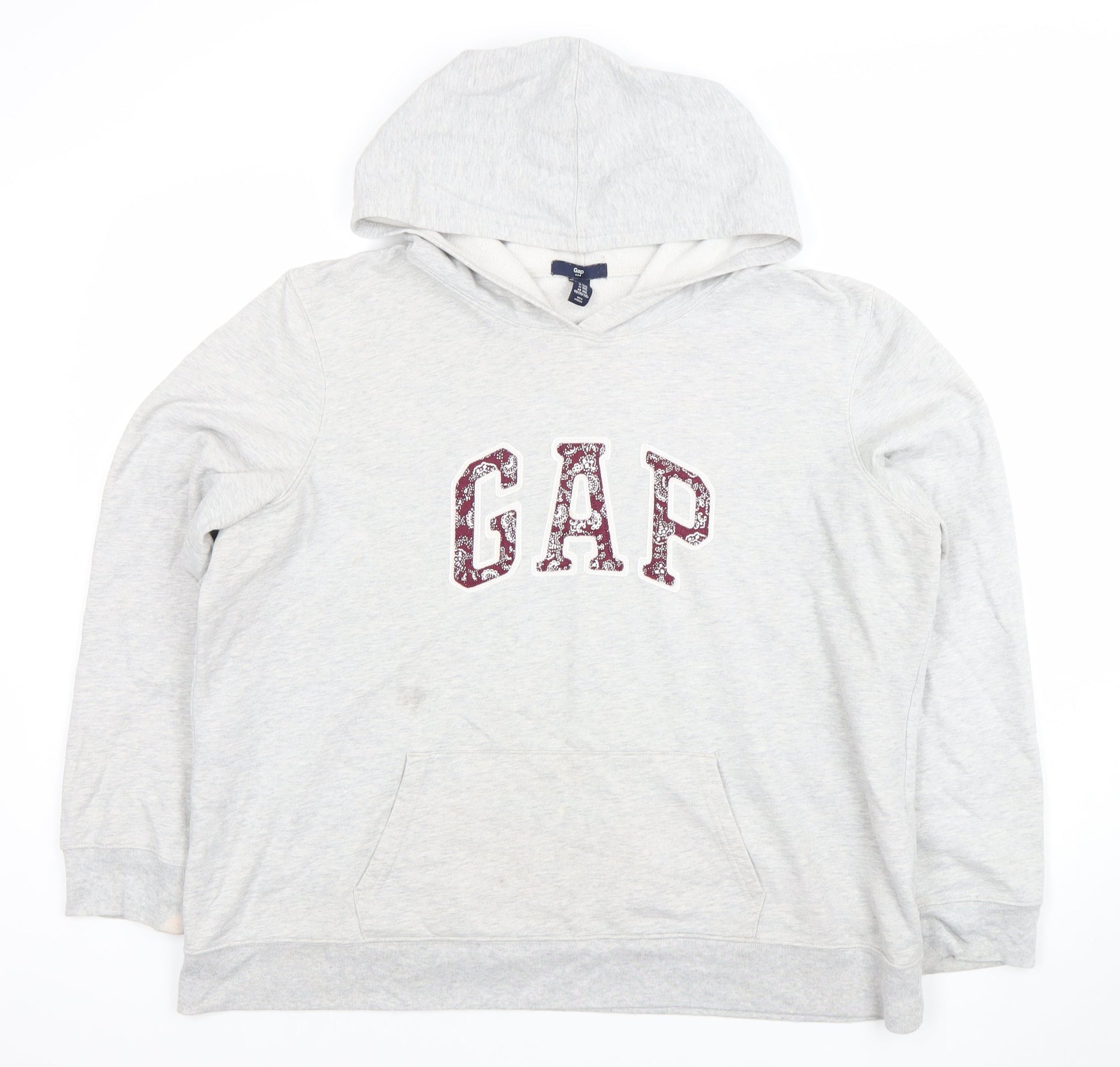 GAP Women Grey XXL Pullover Hoodie Cotton Logo Embroidered Sweatshirt