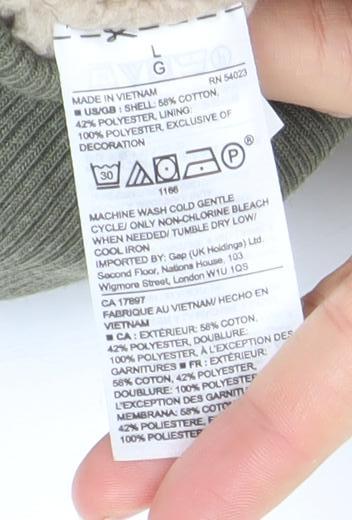 GAP Women Khaki Green Full Zip Hooded Sweatshirt Size L Fleece Lined