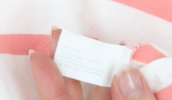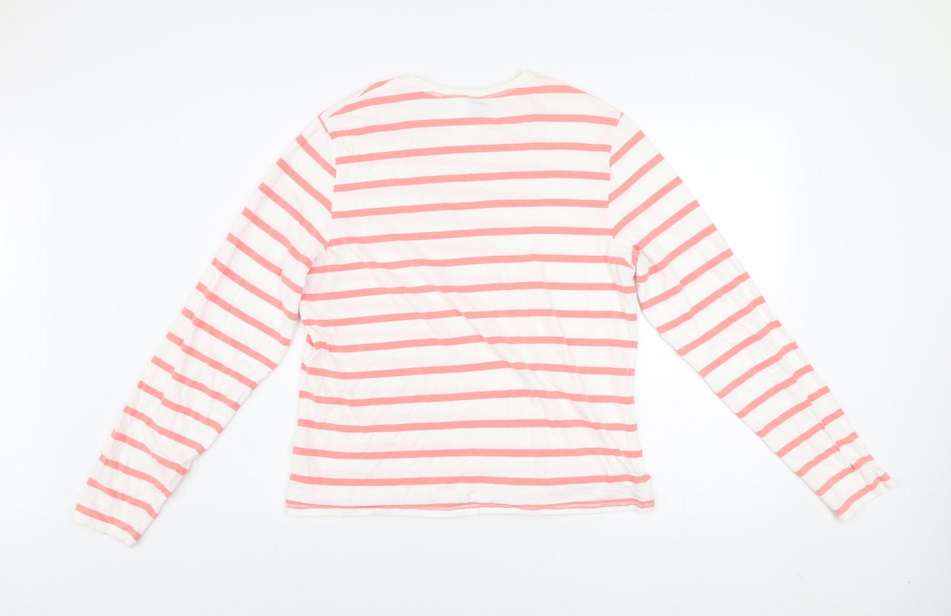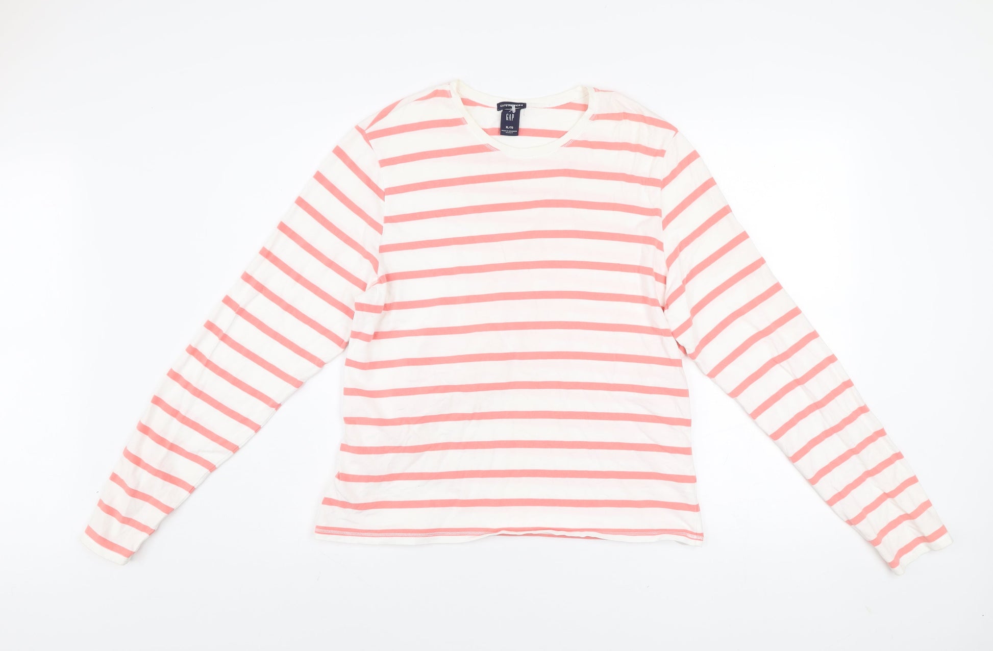 GAP Women Pink White Striped Long Sleeve Cotton Stretch T-Shirt XL