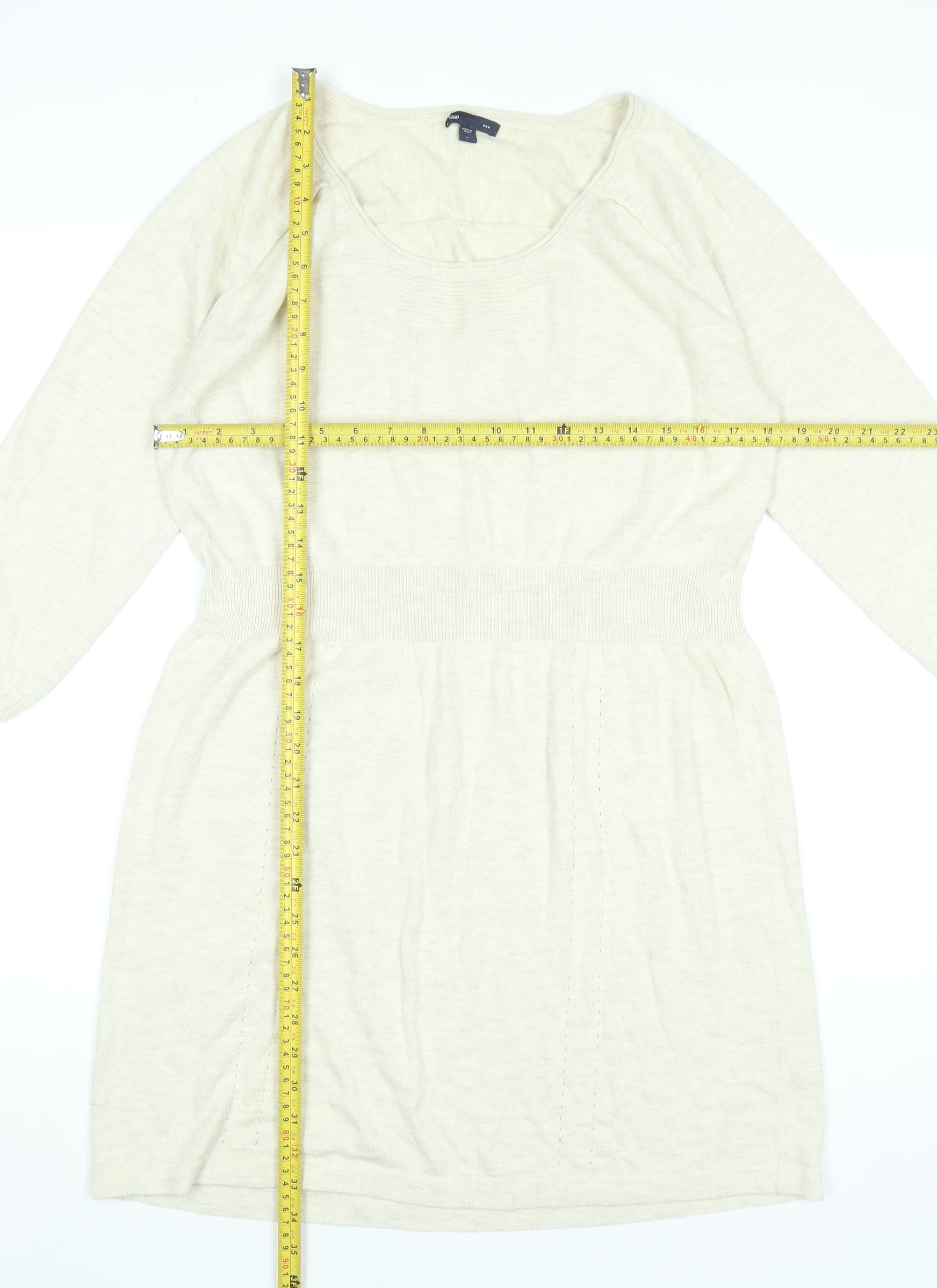 Gap Women’s Beige Jumper Dress L Knit Cotton Blend 3/4 Sleeve