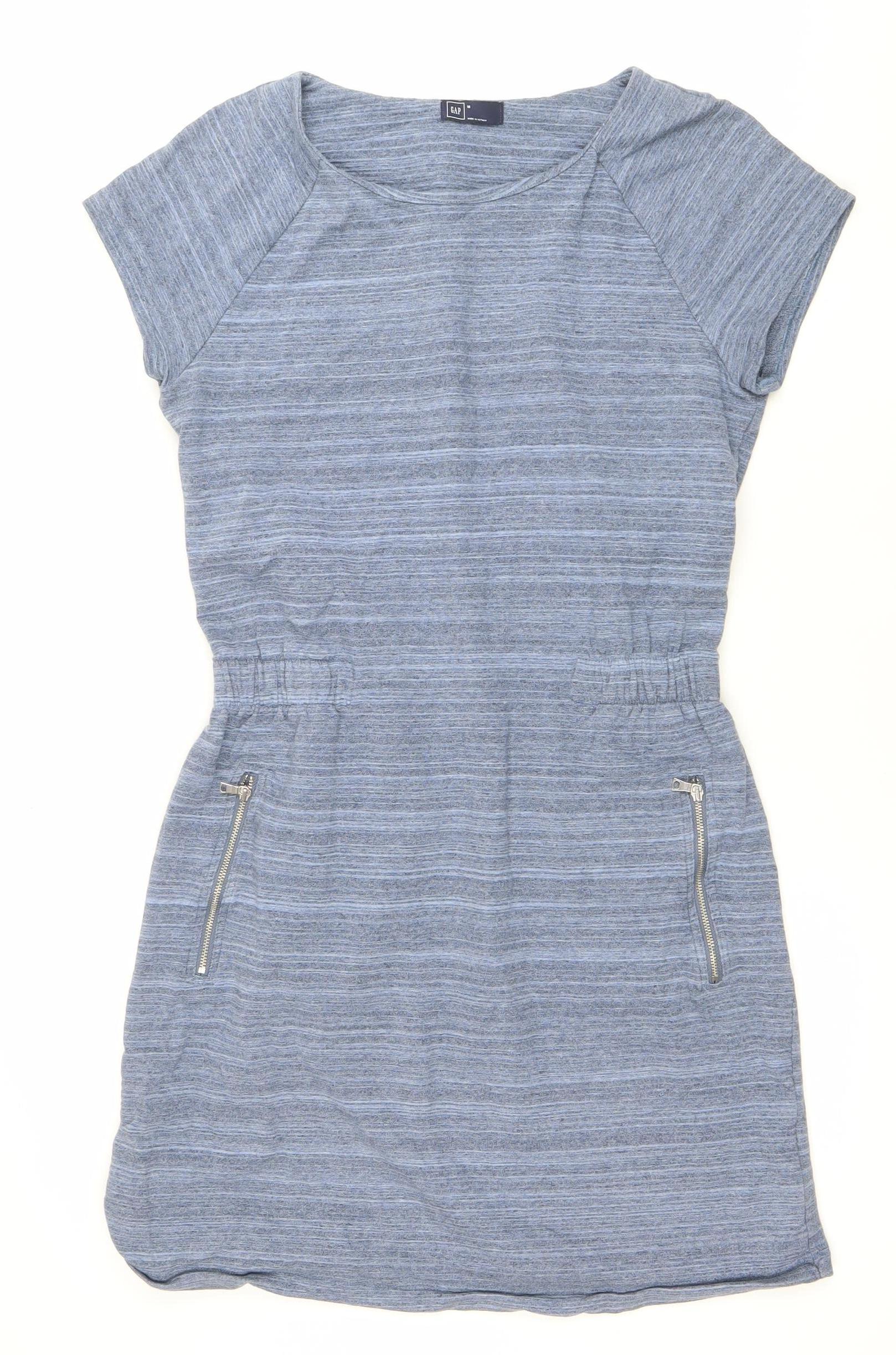 GAP Women’s Blue Striped Shift Dress M Cotton Blend Zip Casual