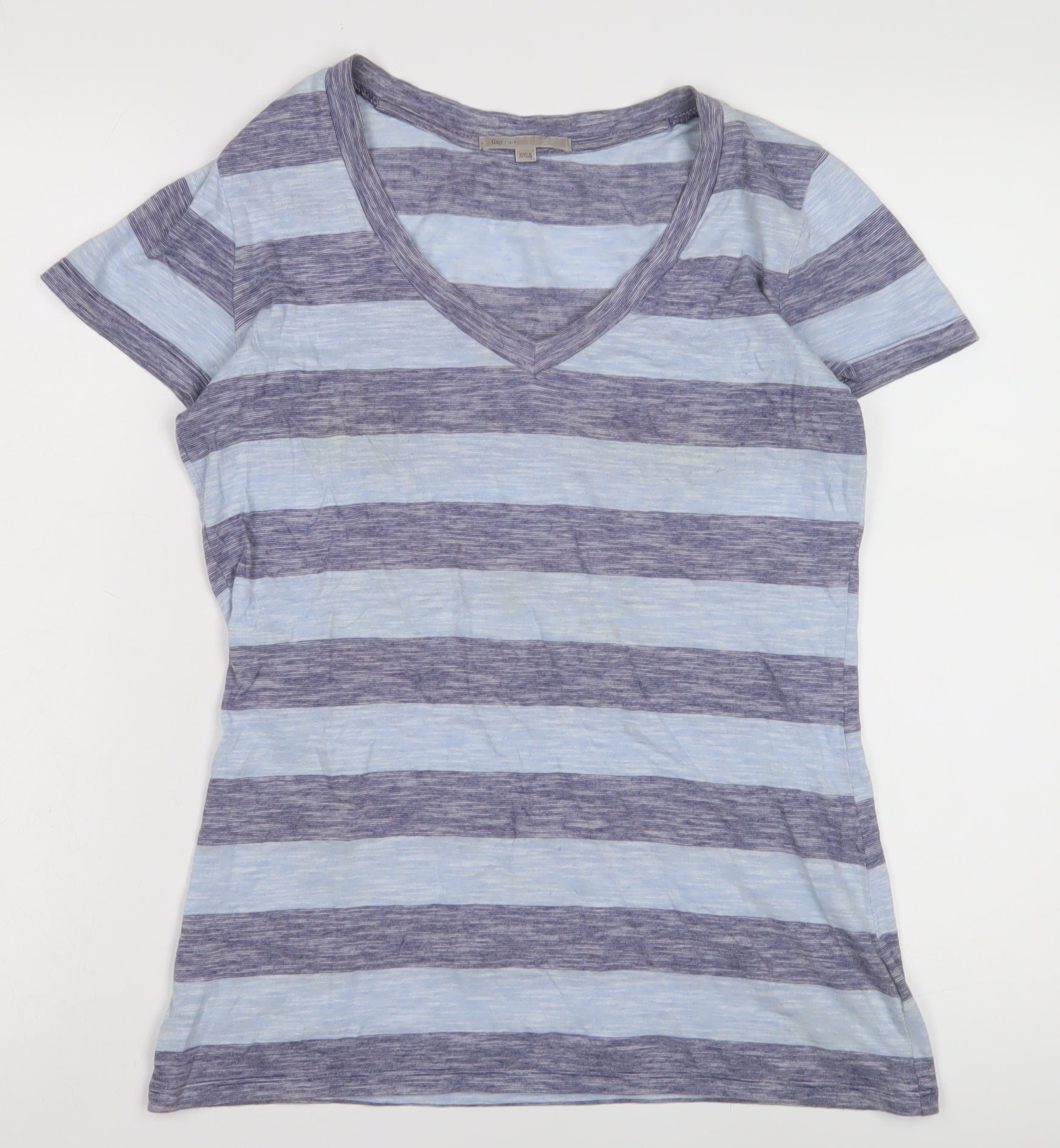 Gap Women’s Blue Striped V-Neck T-Shirt, Size S