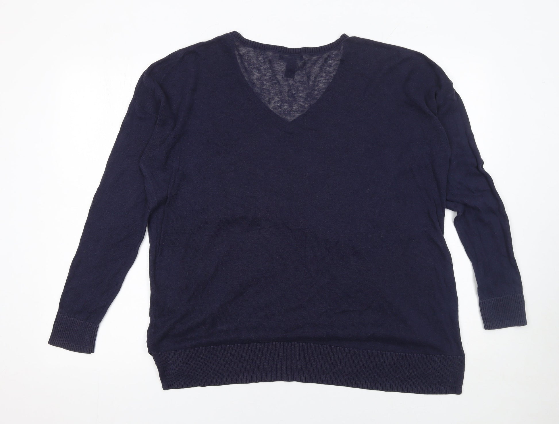 Gap Women’s Blue V-Neck Cotton Knit Pullover Jumper Size L