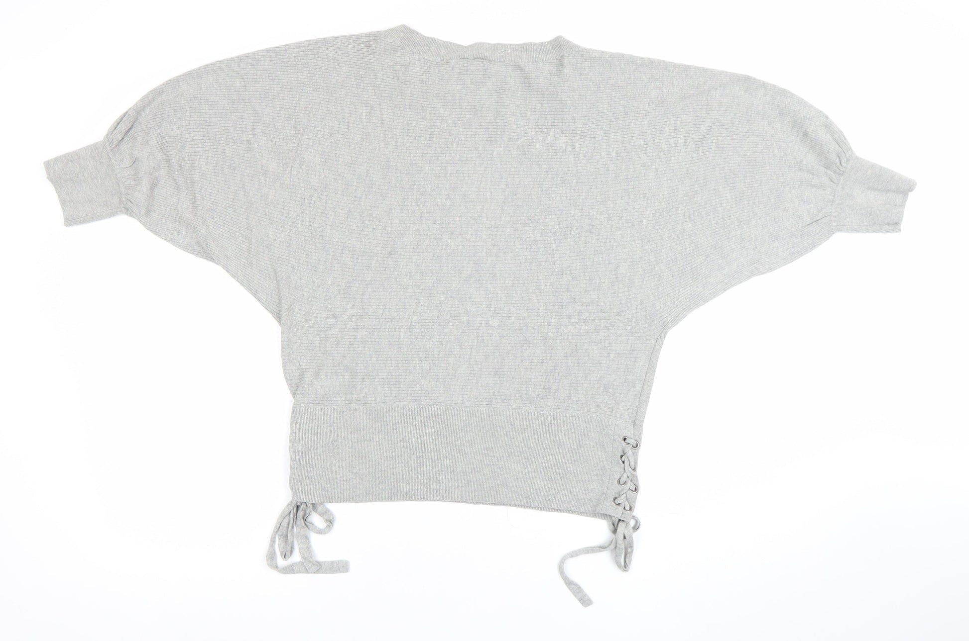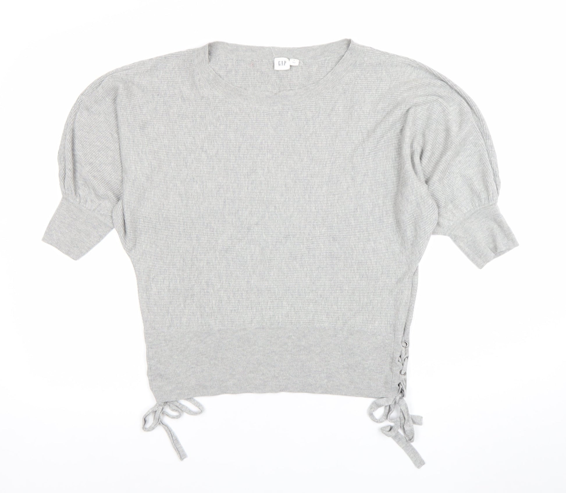 GAP Women’s Grey Cropped Knit Blouse S Short Sleeve Tie Detail