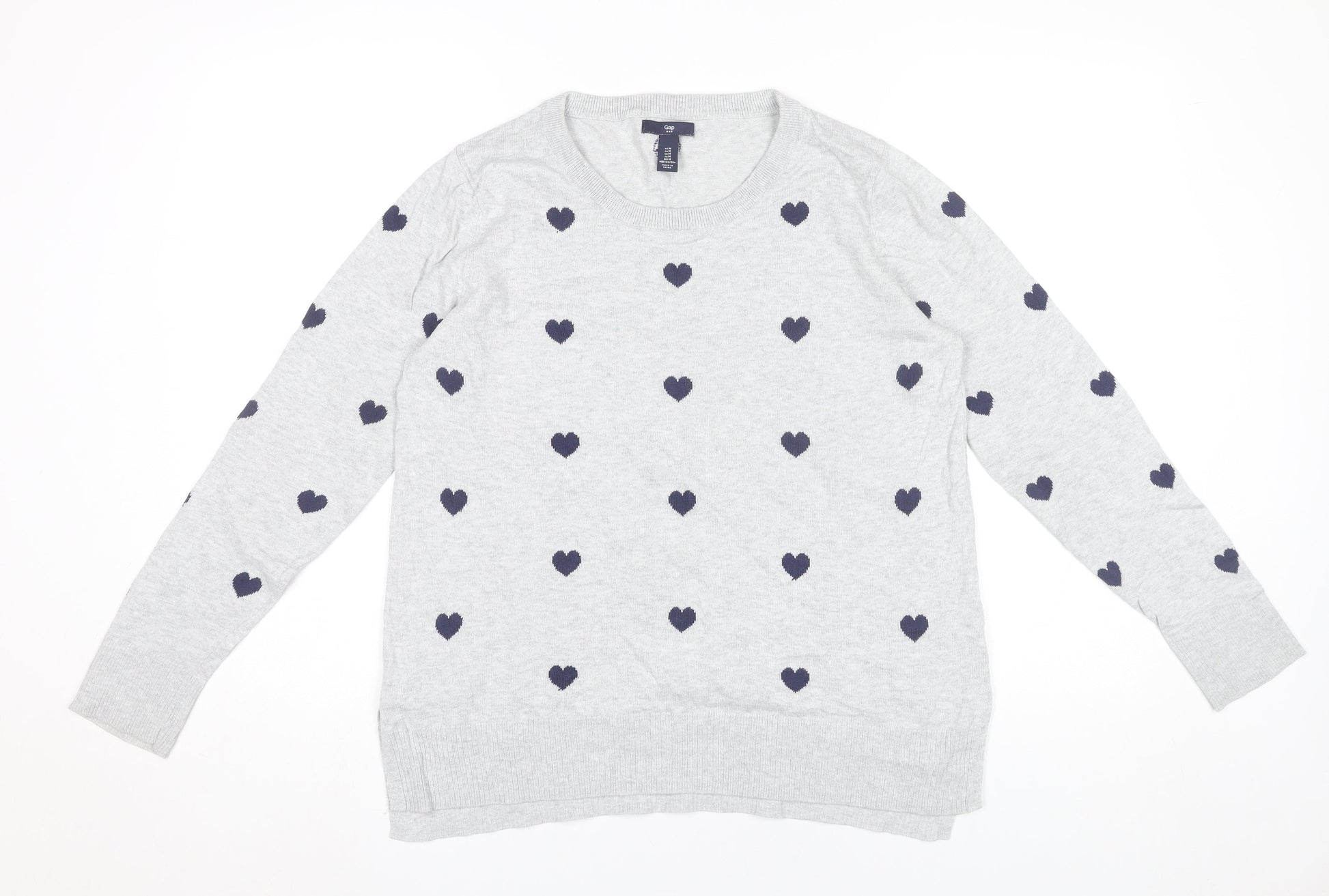Gap Women’s Grey Heart Jumper Size M Crew Neck Cotton Pullover