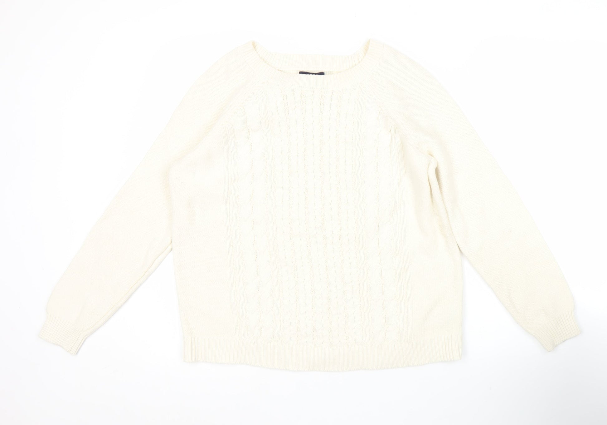 Gap Women’s Ivory Cable-Knit Cotton Blend Pullover Jumper L