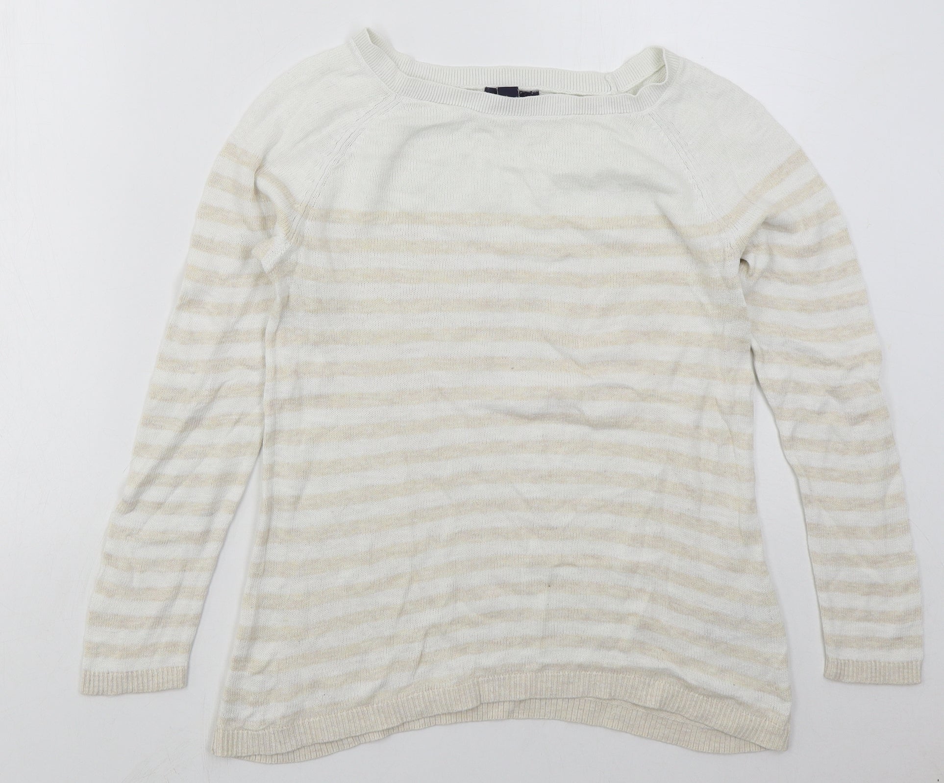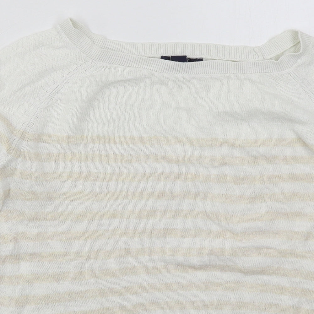 Gap Womens Beige Boat Neck Striped Cotton Pullover Jumper Size S