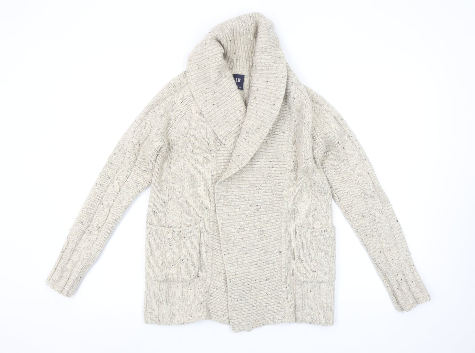 GAP Women's Beige Cable-Knit Wool Blend Shawl Collar Cardigan S