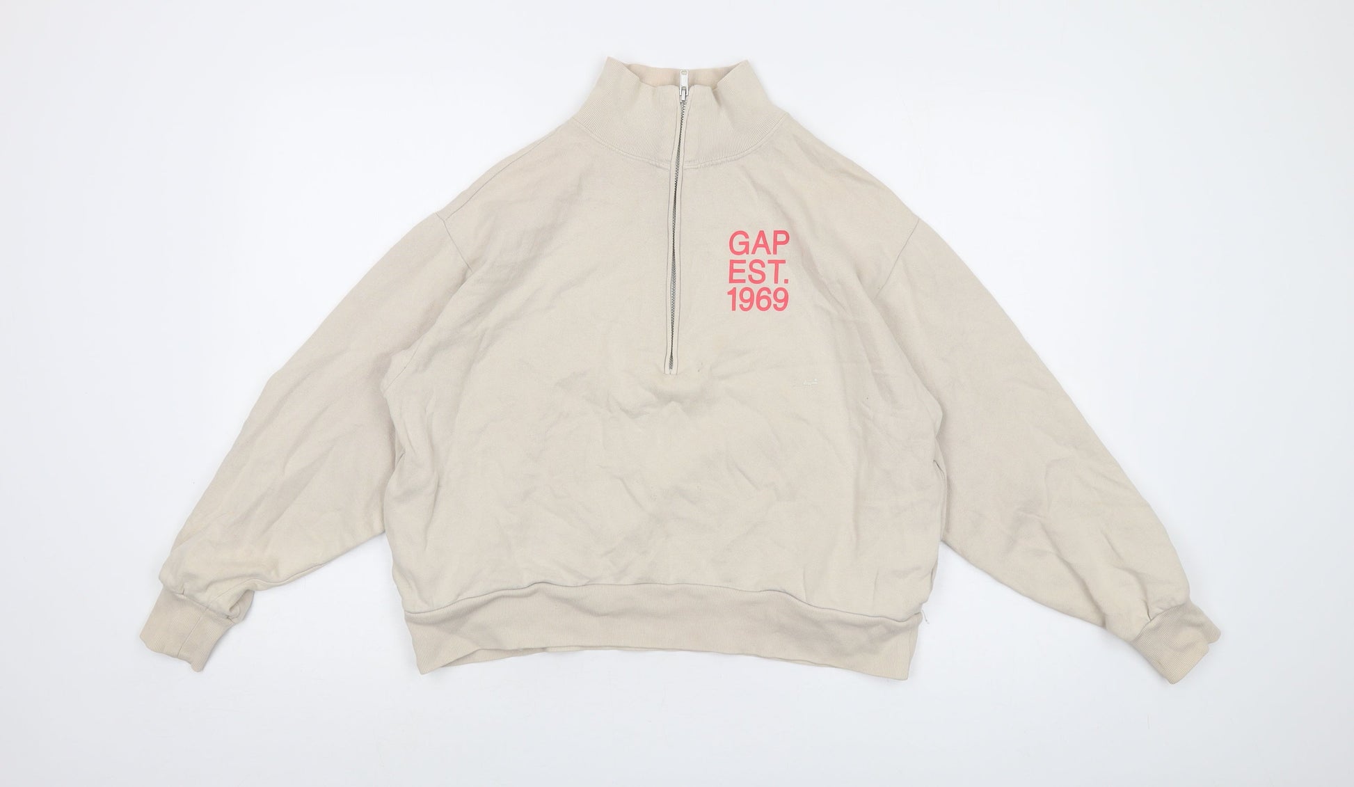 Gap Womens Beige Cotton Pullover Sweatshirt Size S Zip