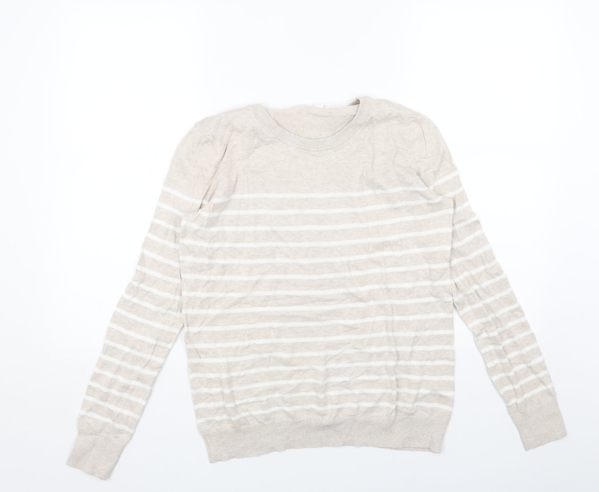 Gap Womens Beige Round Neck Striped Acrylic Pullover Jumper Size S