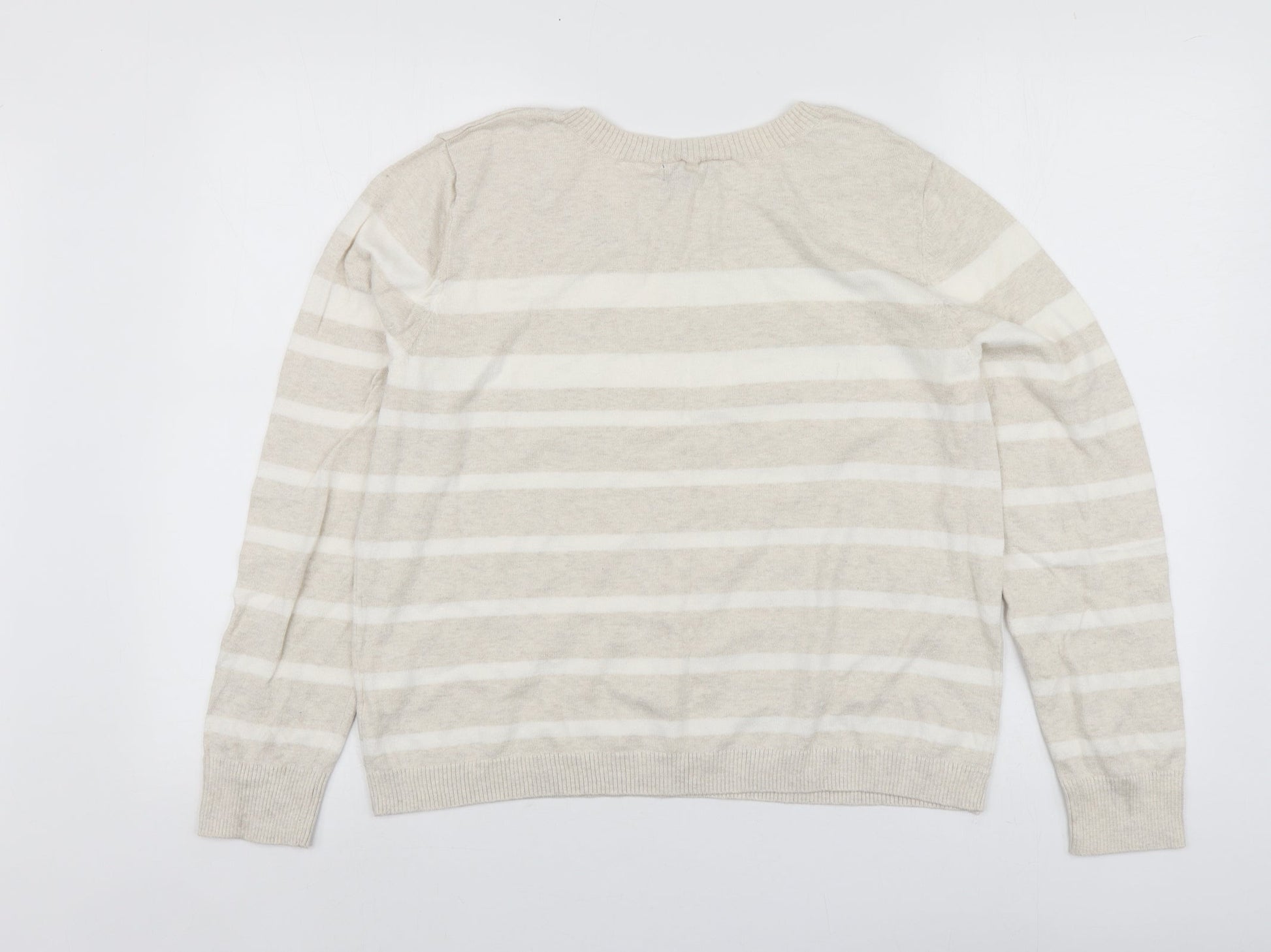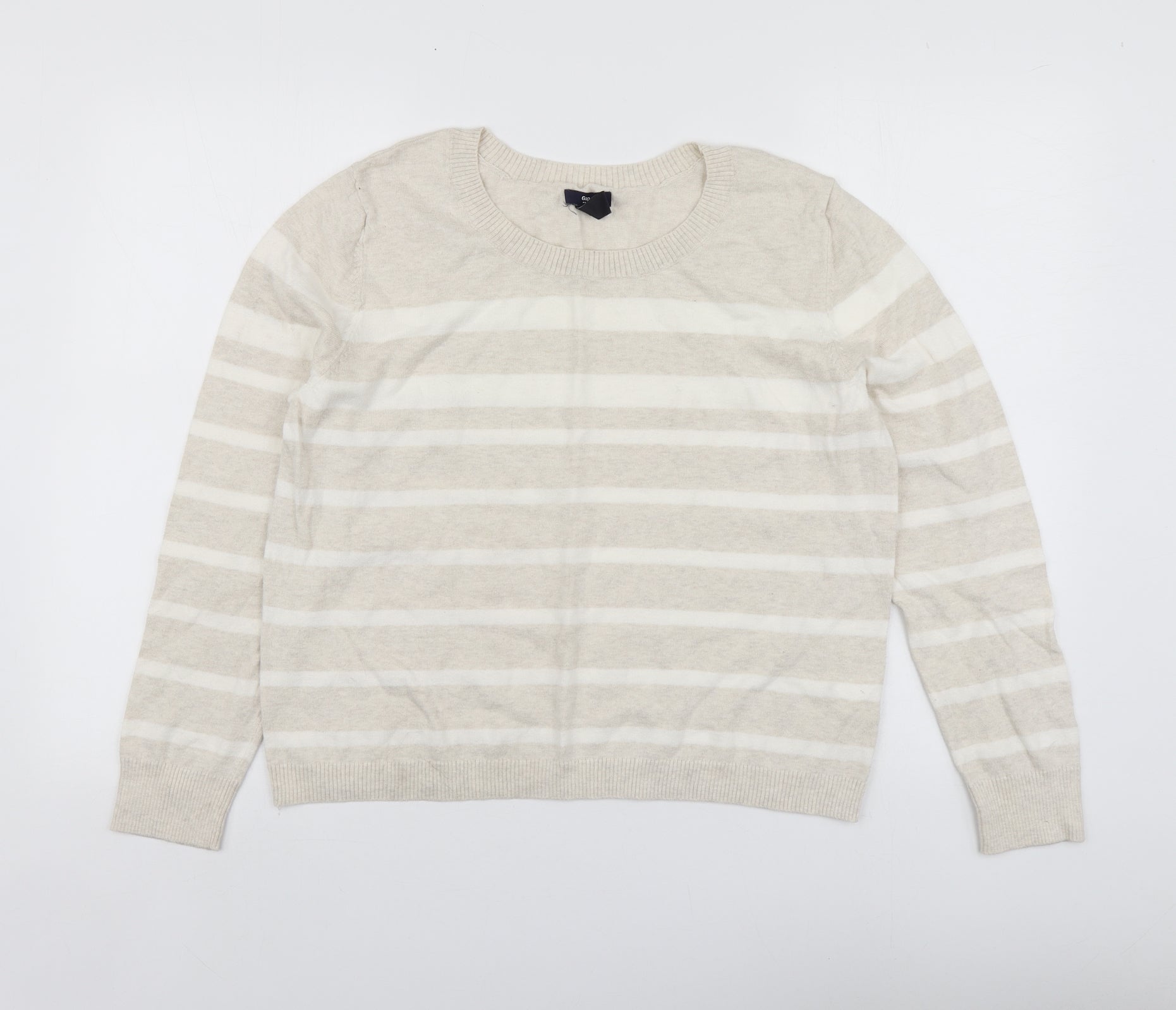 Gap Womens Beige Round Neck Striped Cotton Pullover Jumper Size XL
