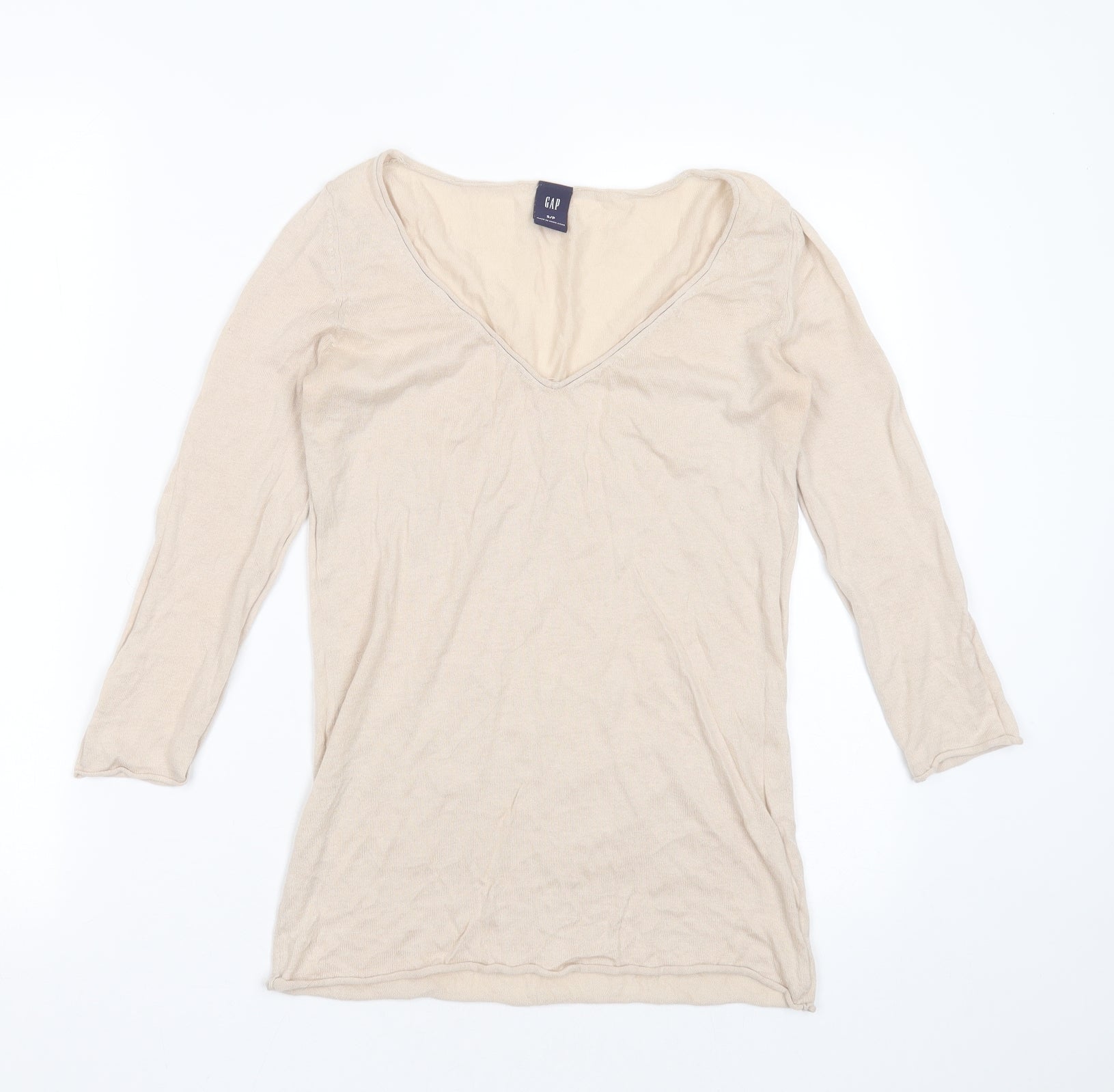 Gap Womens Beige V-Neck Cotton Pullover Jumper Size S