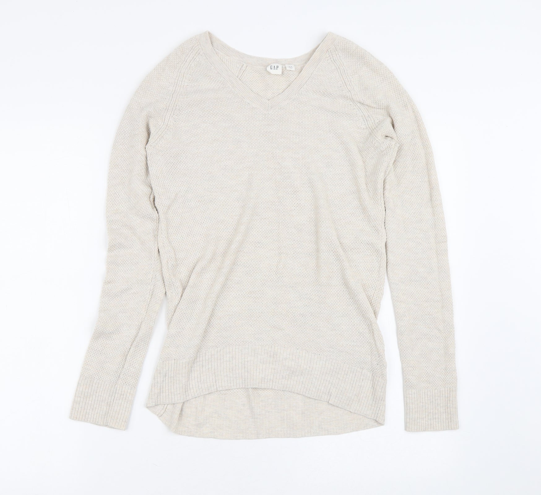 Gap Womens Beige V-Neck Cotton Pullover Jumper Size XS