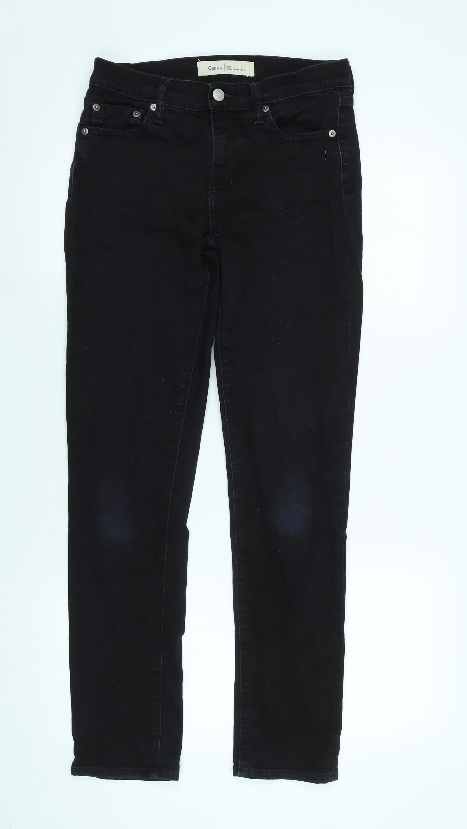Gap Womens Black Cotton Blend Straight Jeans Size 28 in L29 in Regular Zip
