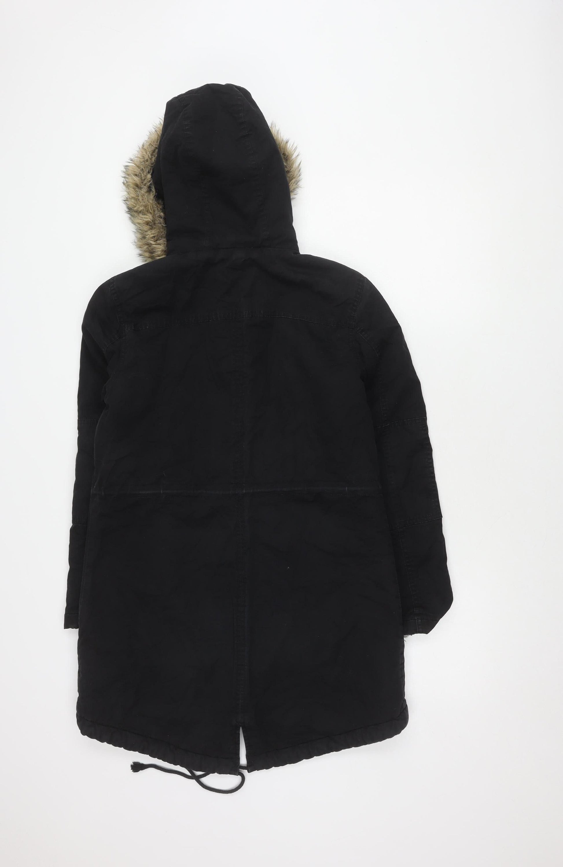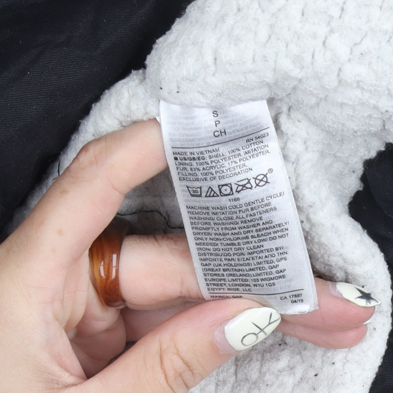 GAP Women's Black Parka Coat S Hooded Fur Trim