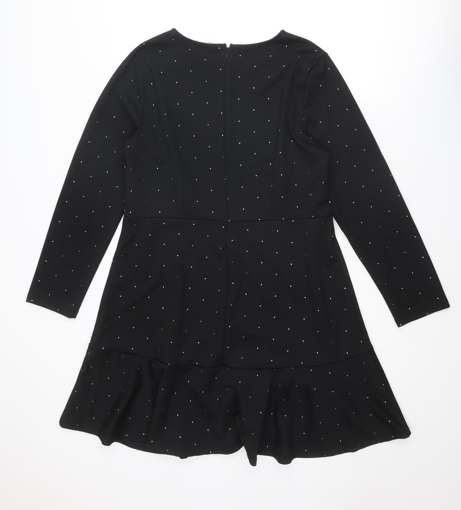 Gap Womens Black Polka Dot Polyester A-Line Size 14 Round Neck Zip