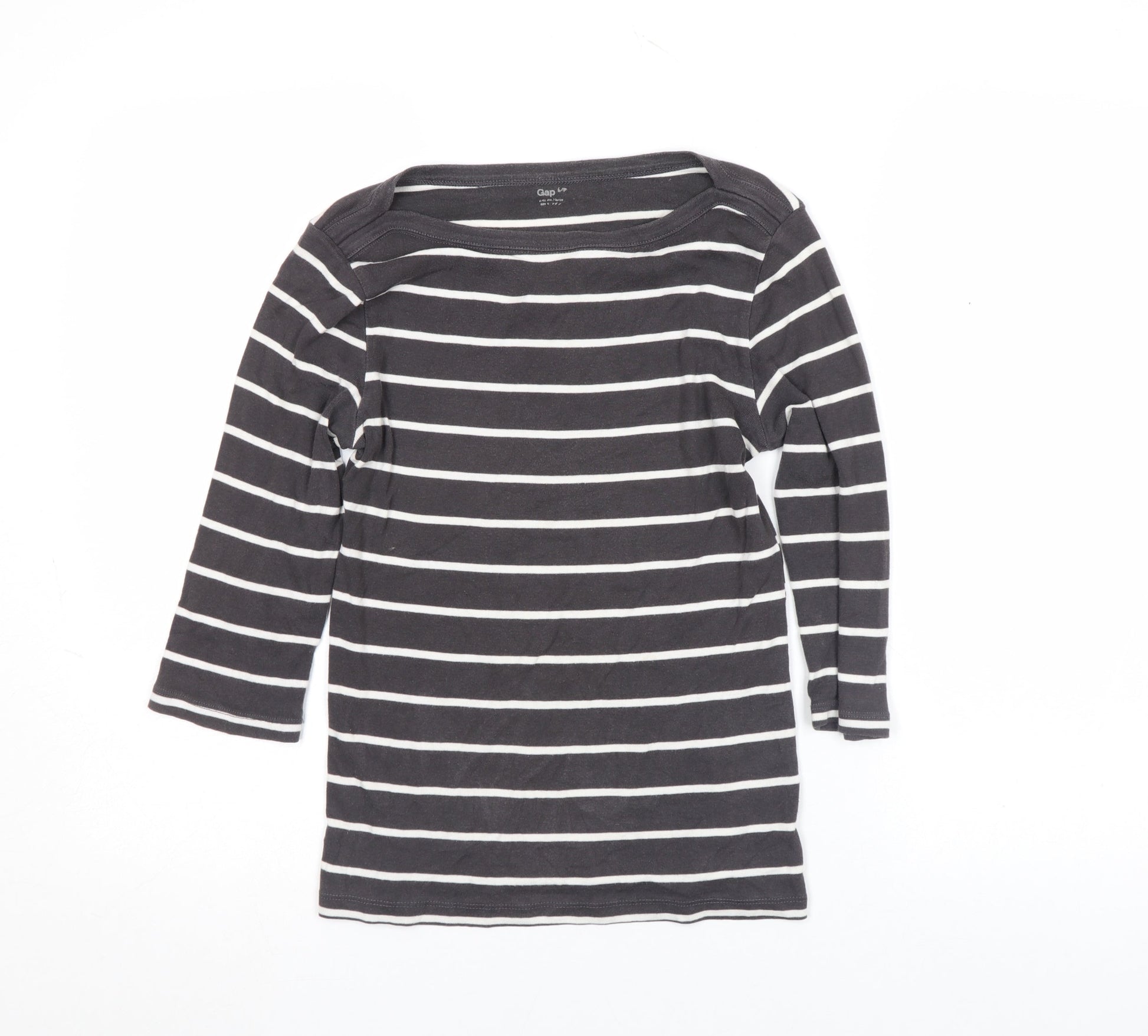 Gap Women's Black Striped 3/4 Sleeve Boat Neck Cotton T-Shirt S Petite