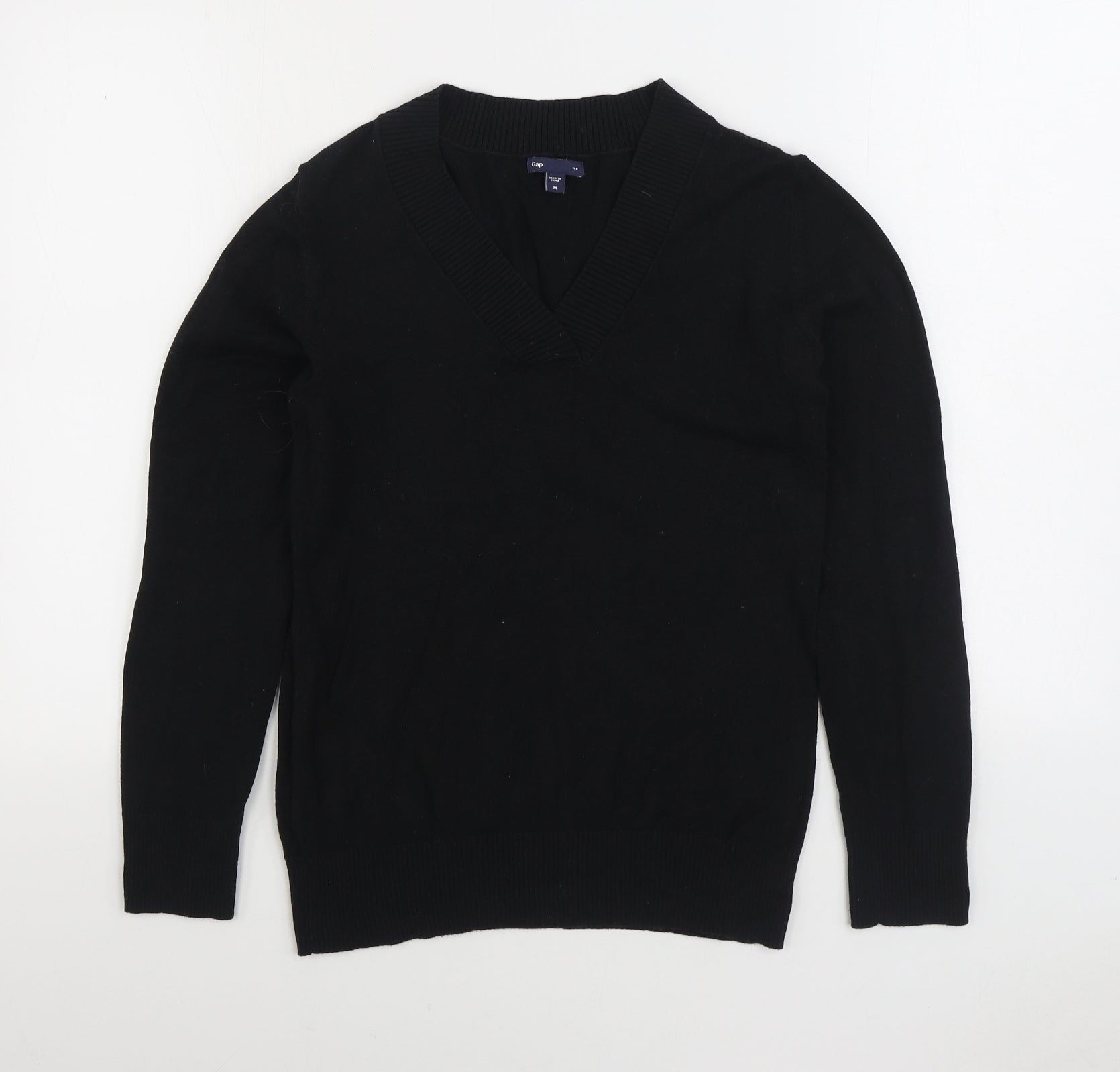 Gap Womens Black V-Neck Acrylic Pullover Jumper Size M