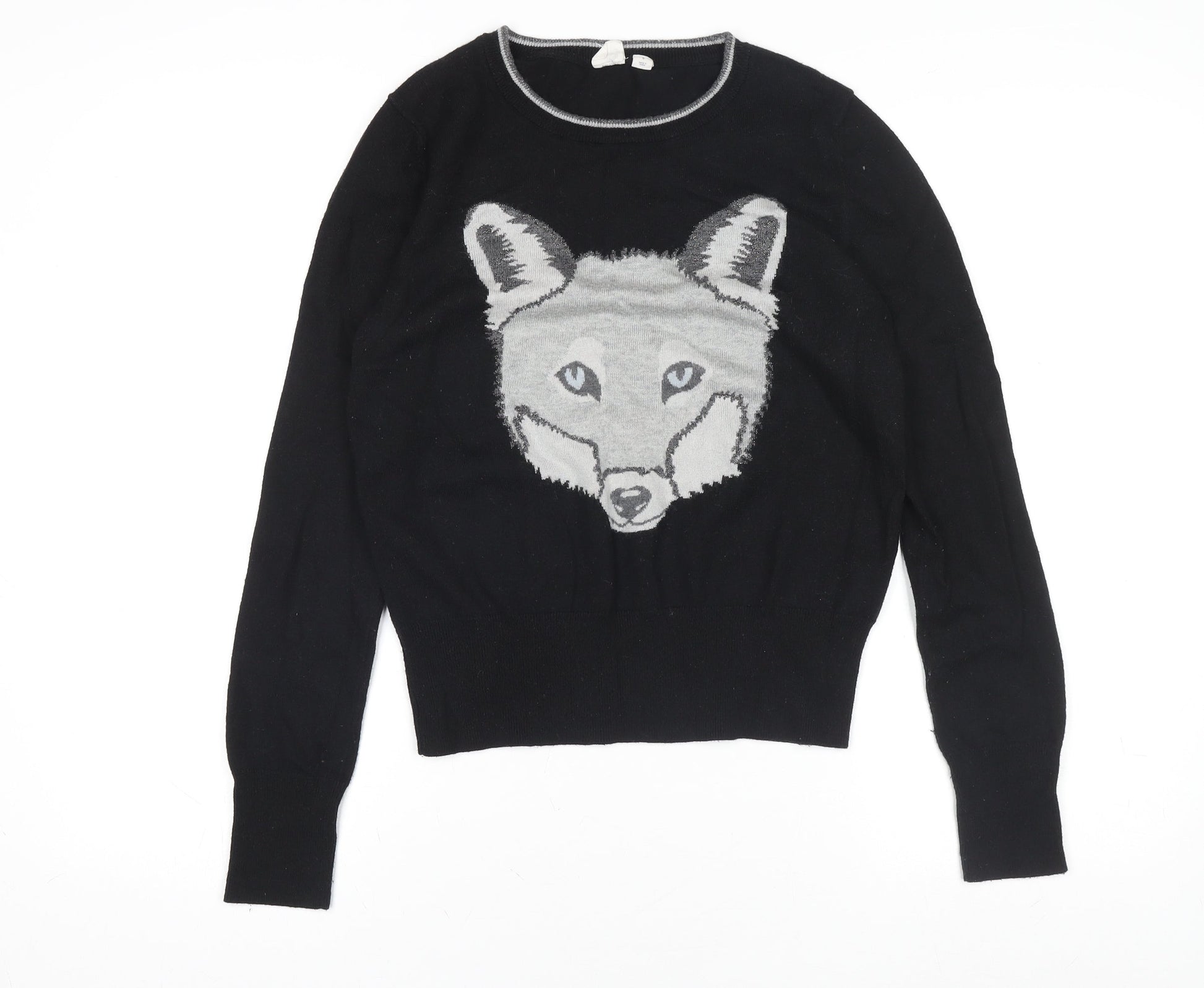 GAP Womens Black Wool Blend Fox Jumper Size S Long Sleeve Crew Neck
