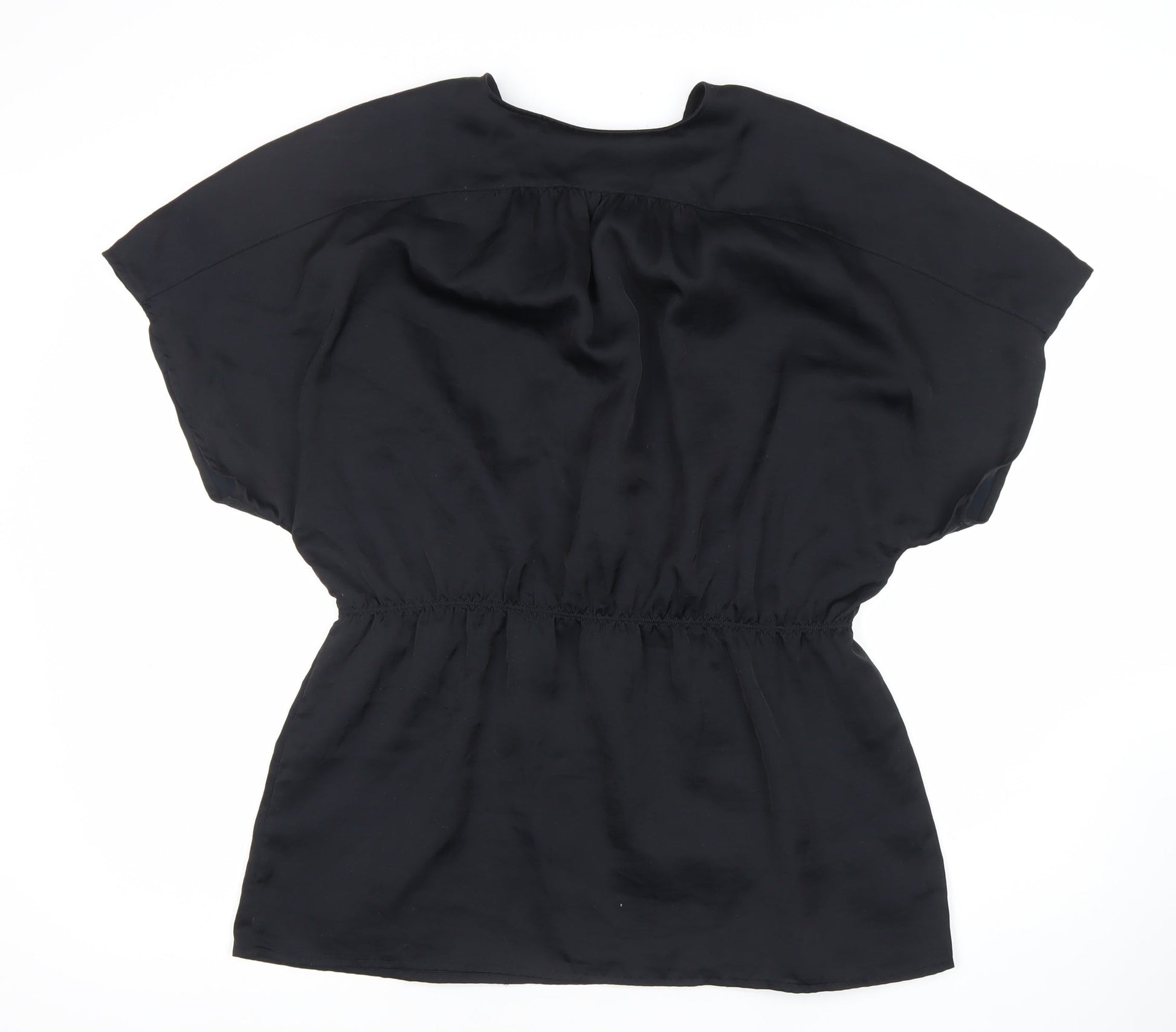 Gap Womens Black Wrap Blouse Size L Short Sleeve V-Neck Satin