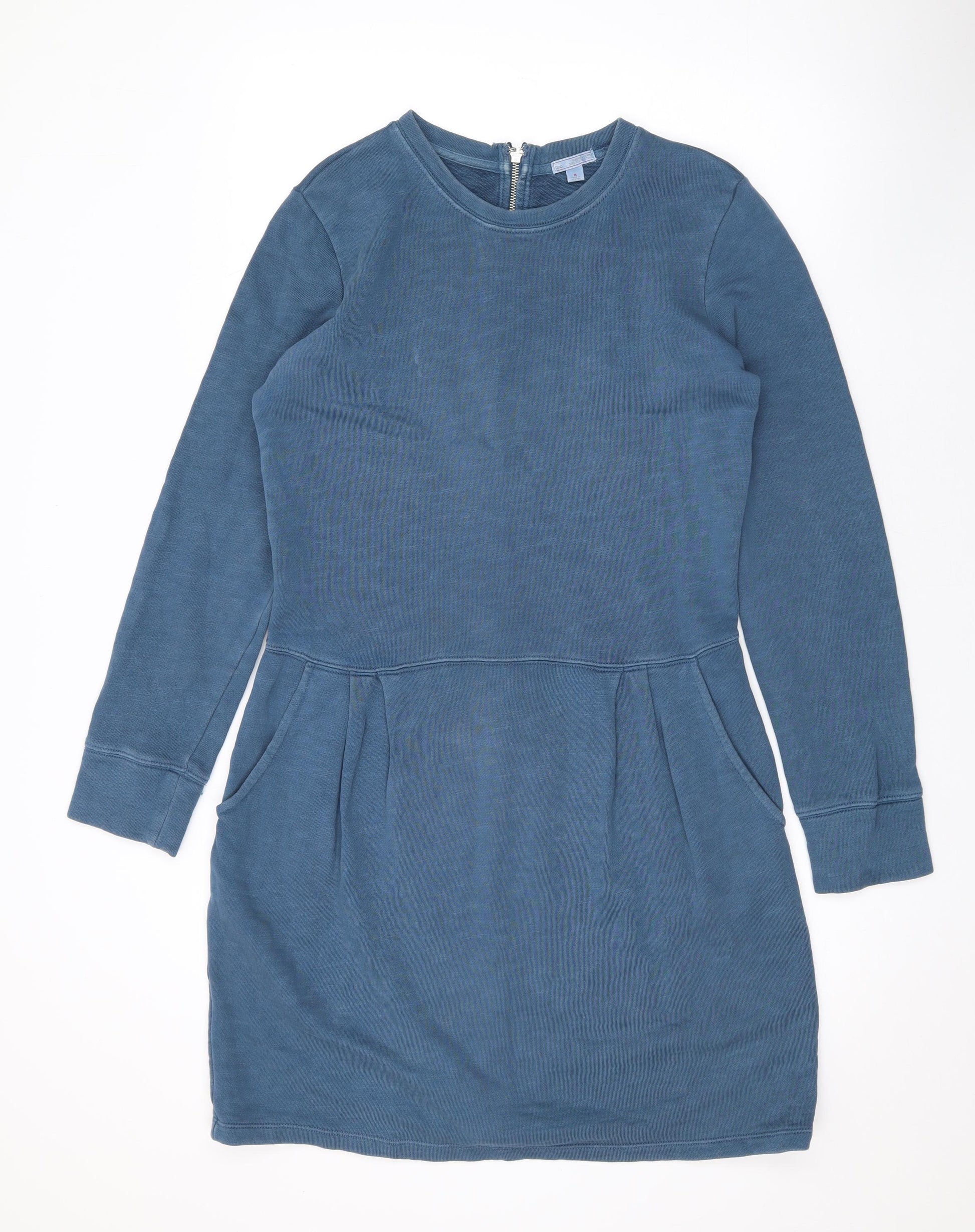 Gap Womens Blue Cotton Pencil Dress Size M Round Neck Zip
