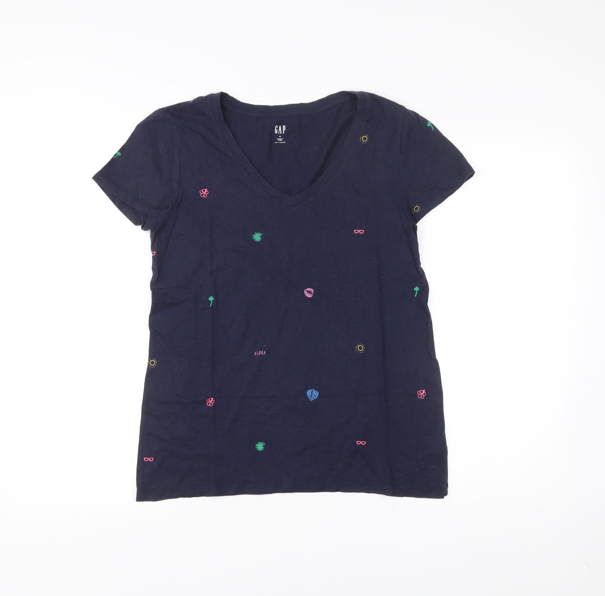 GAP Womens Blue Embroidered Holiday V-Neck T-Shirt Size M