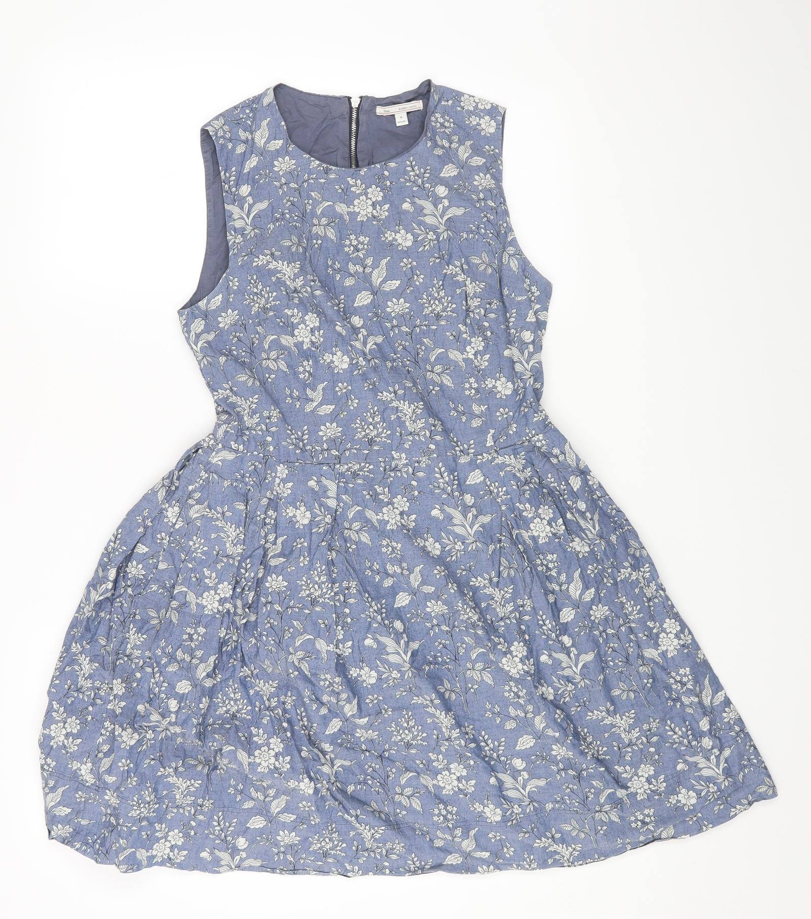 Gap Womens Blue Floral Cotton Fit & Flare Size 4 Round Neck Zip