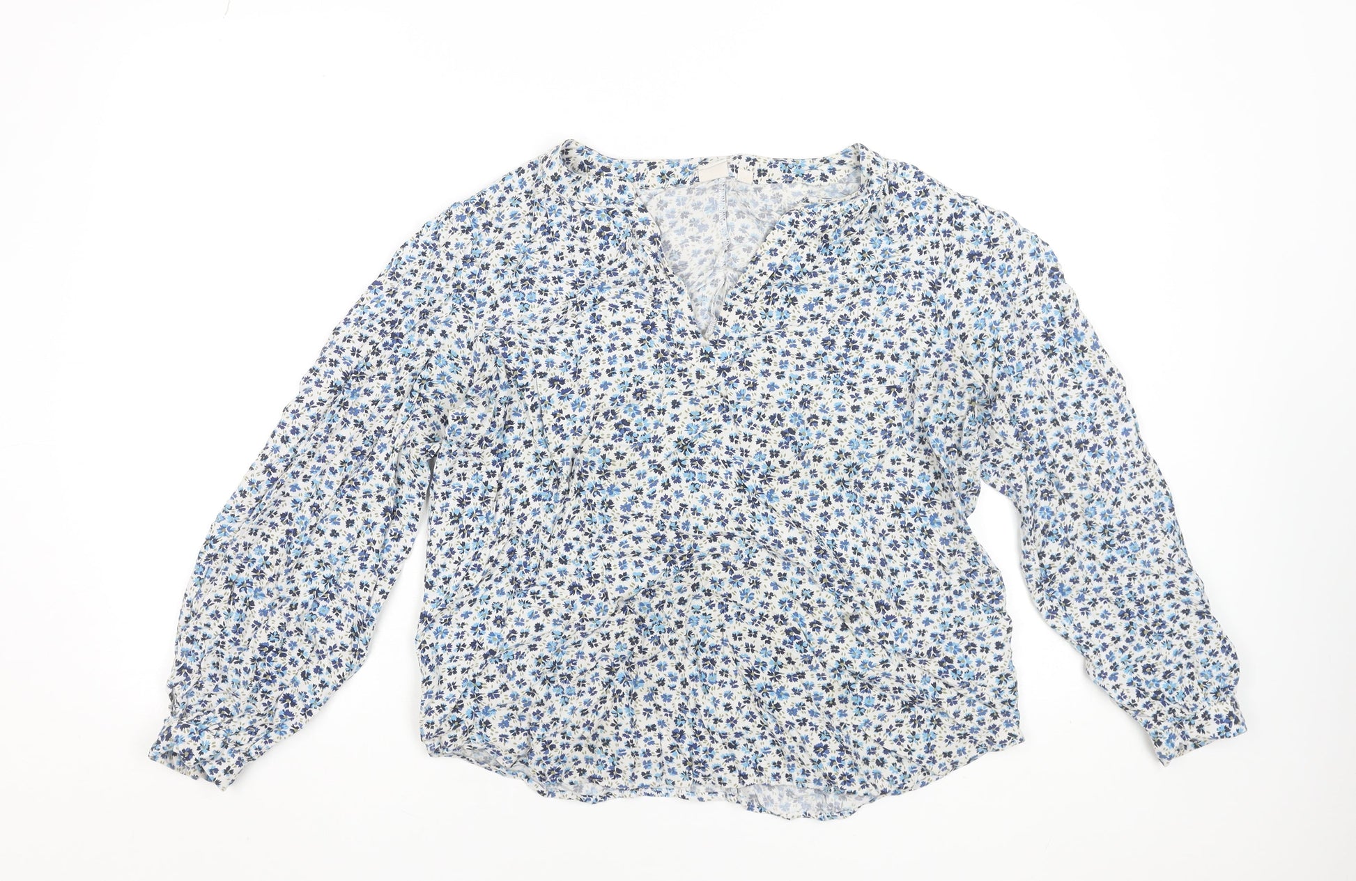GAP Women's Blue Floral Long Sleeve Viscose Tunic Blouse Size L