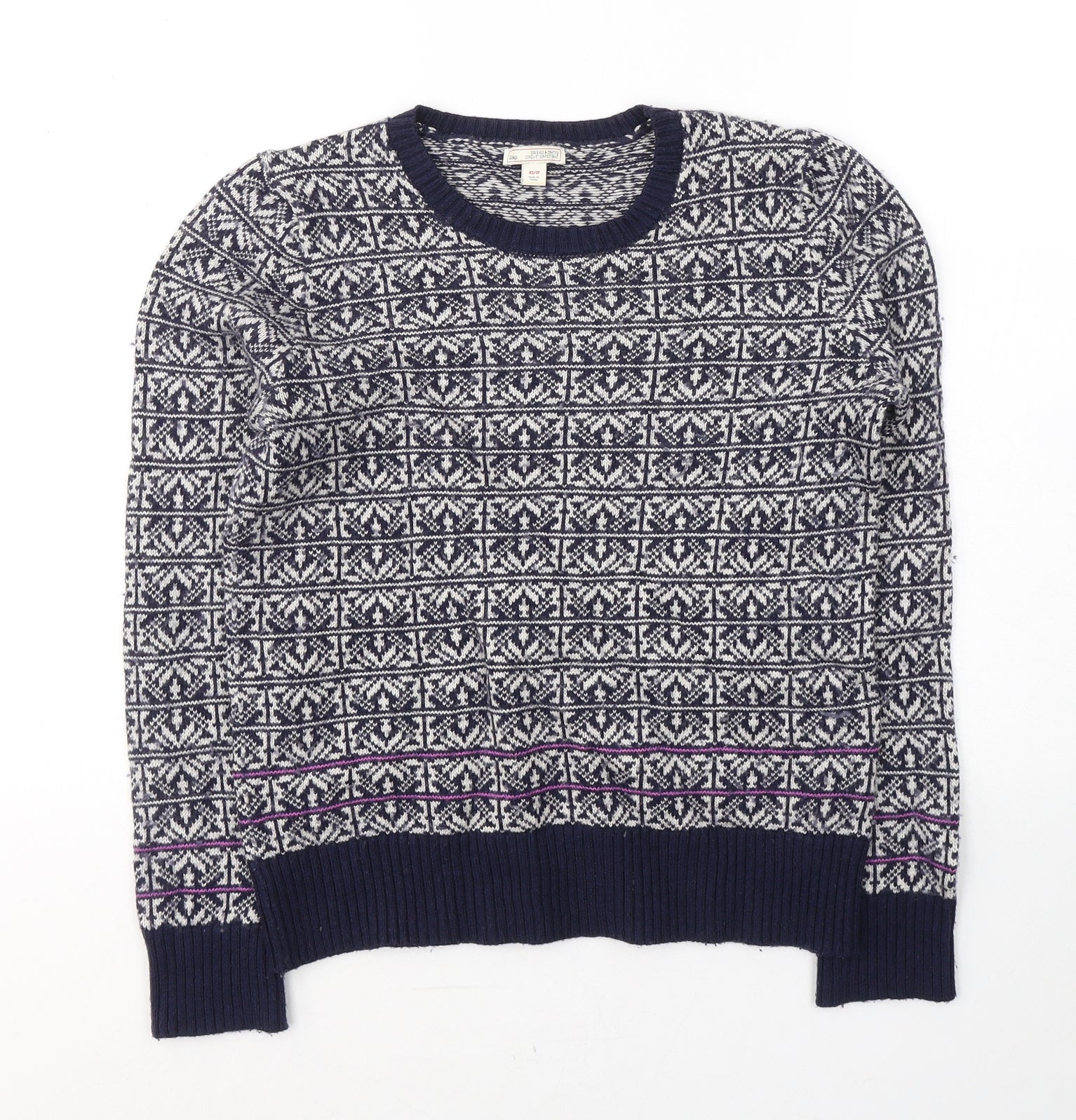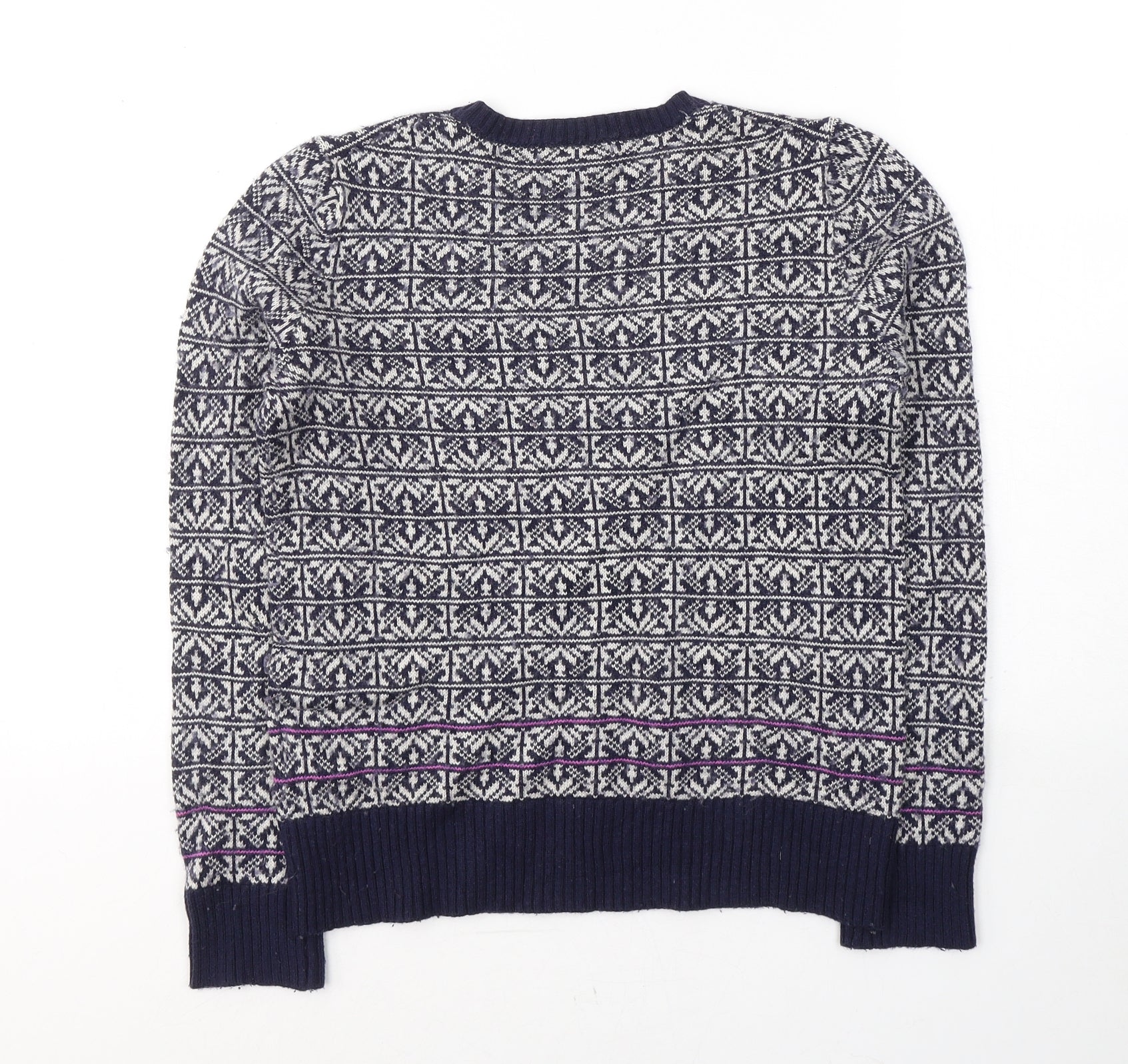 Gap Womens Blue Round Neck Geometric Nylon Pullover Jumper Size XS