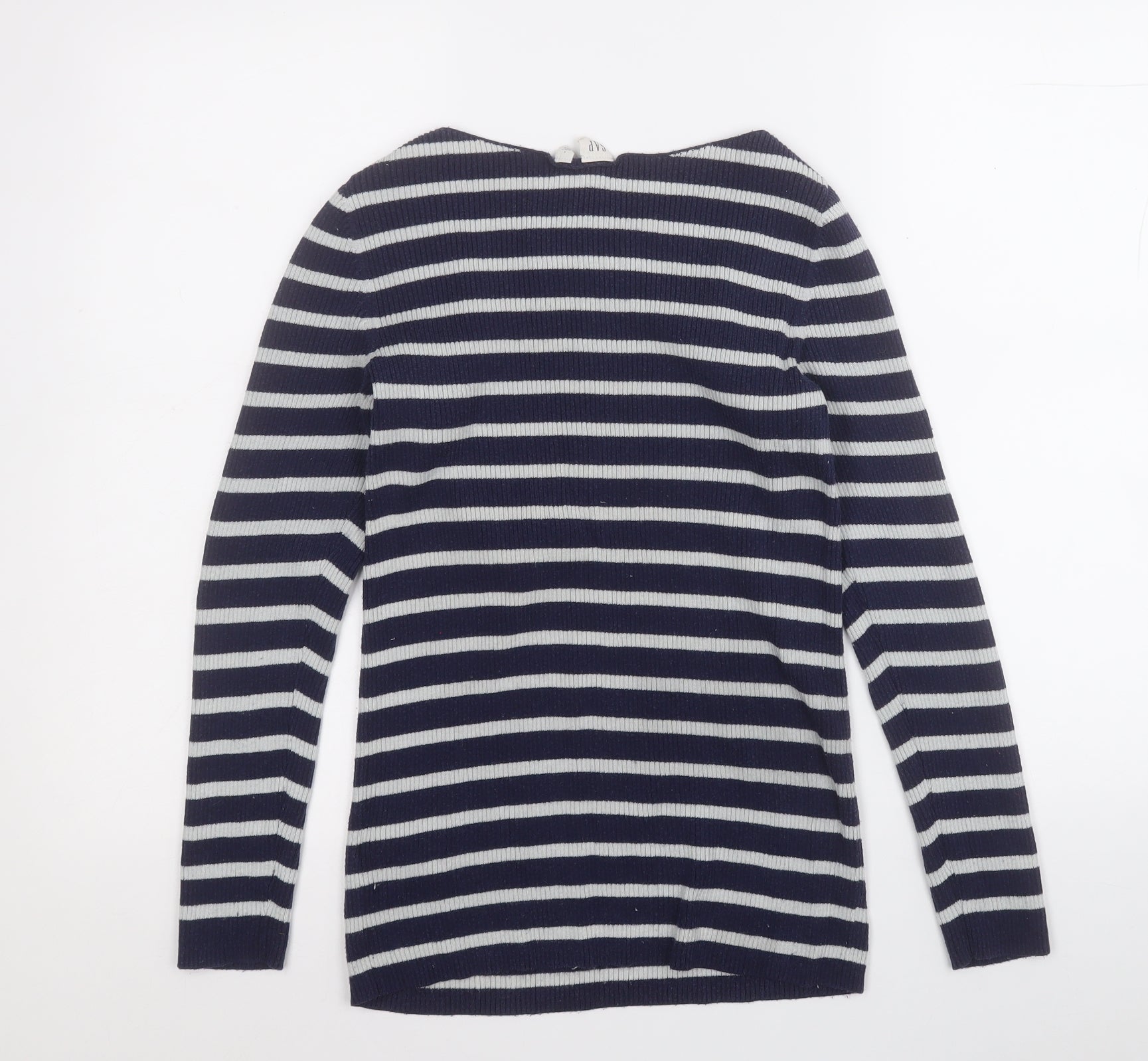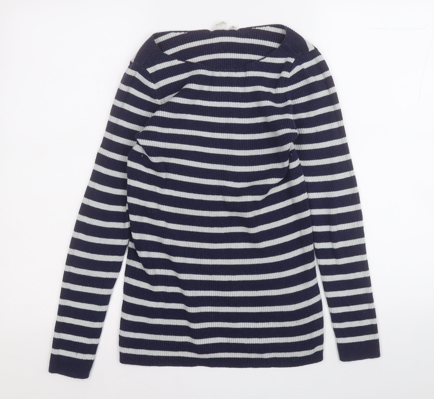 Gap Womens Blue Round Neck Striped Cotton Pullover Jumper Size S