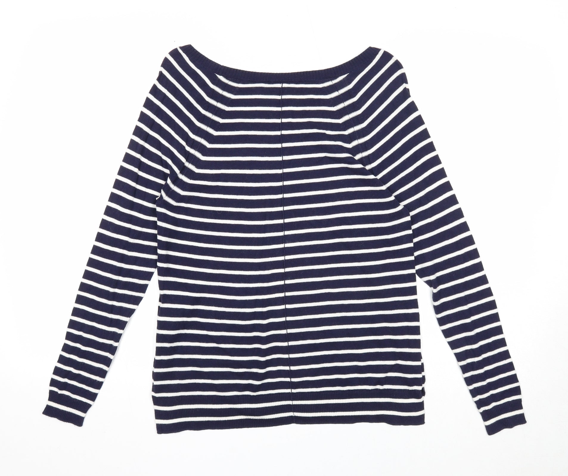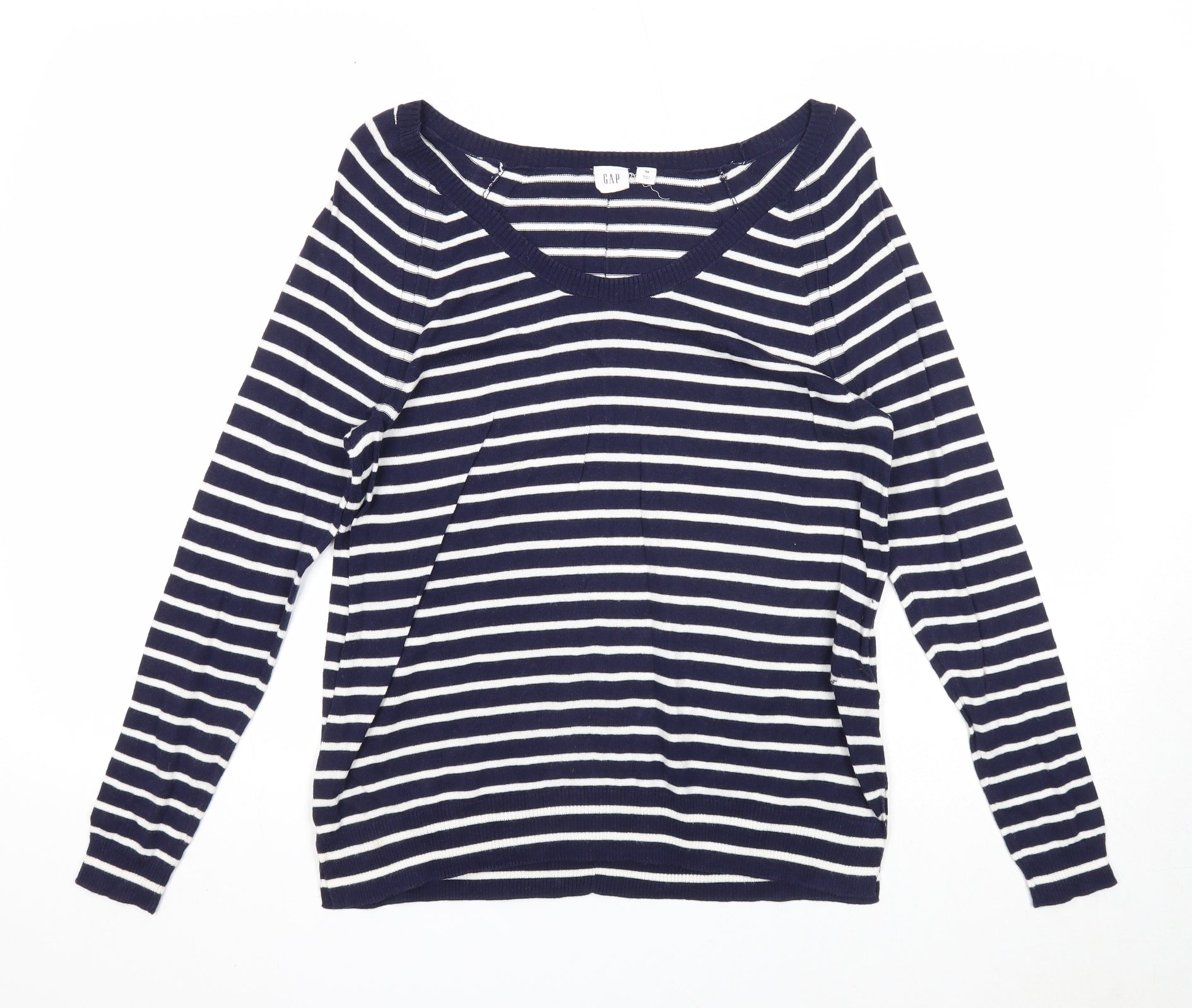 Gap Womens Blue Scoop Neck Striped Cotton Pullover Jumper Size XS