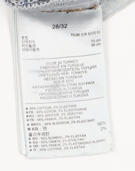 - Waist size: 28 in