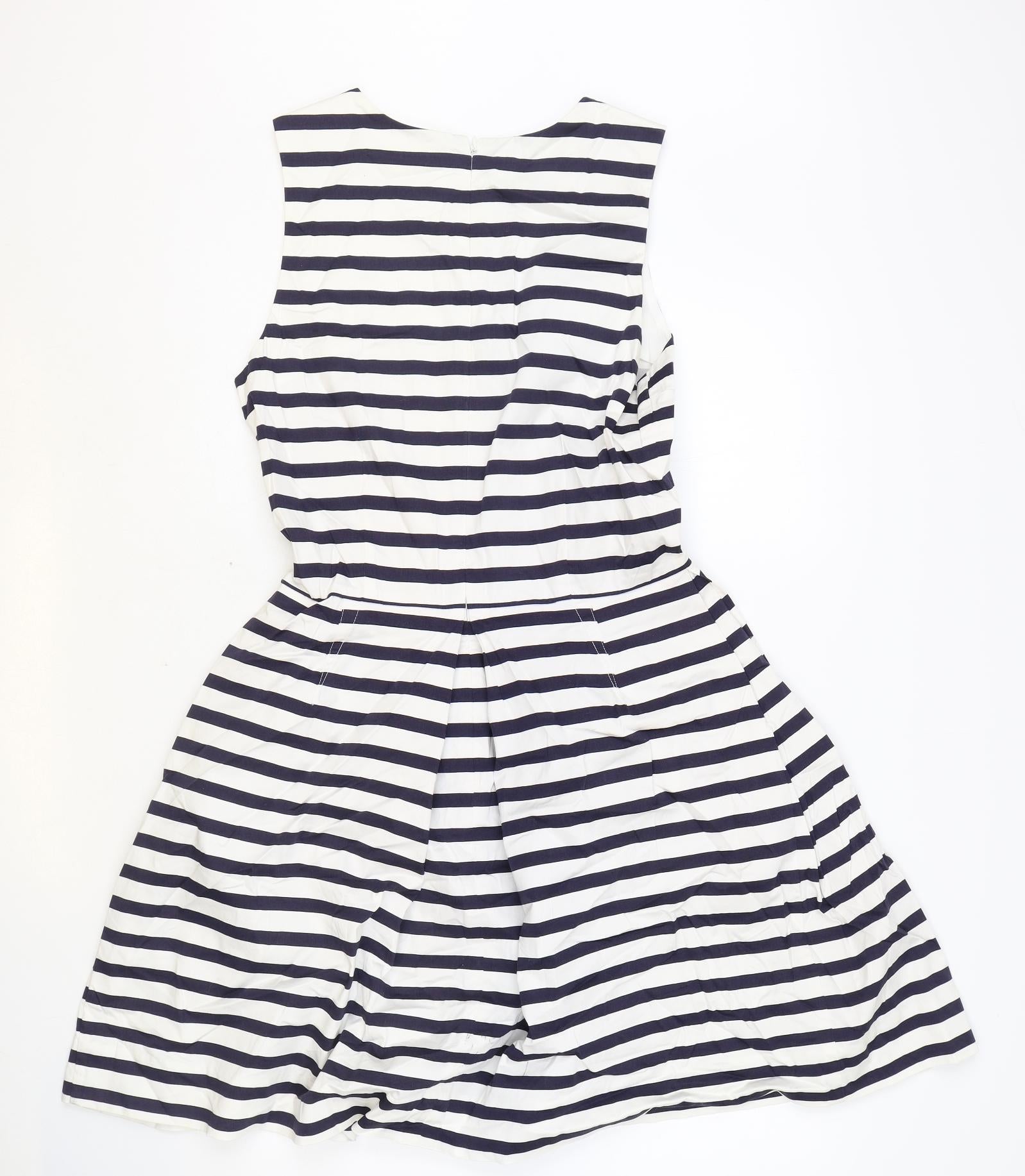 Gap Womens Blue Striped Cotton Skater Dress Size 6 Round Neck Zip