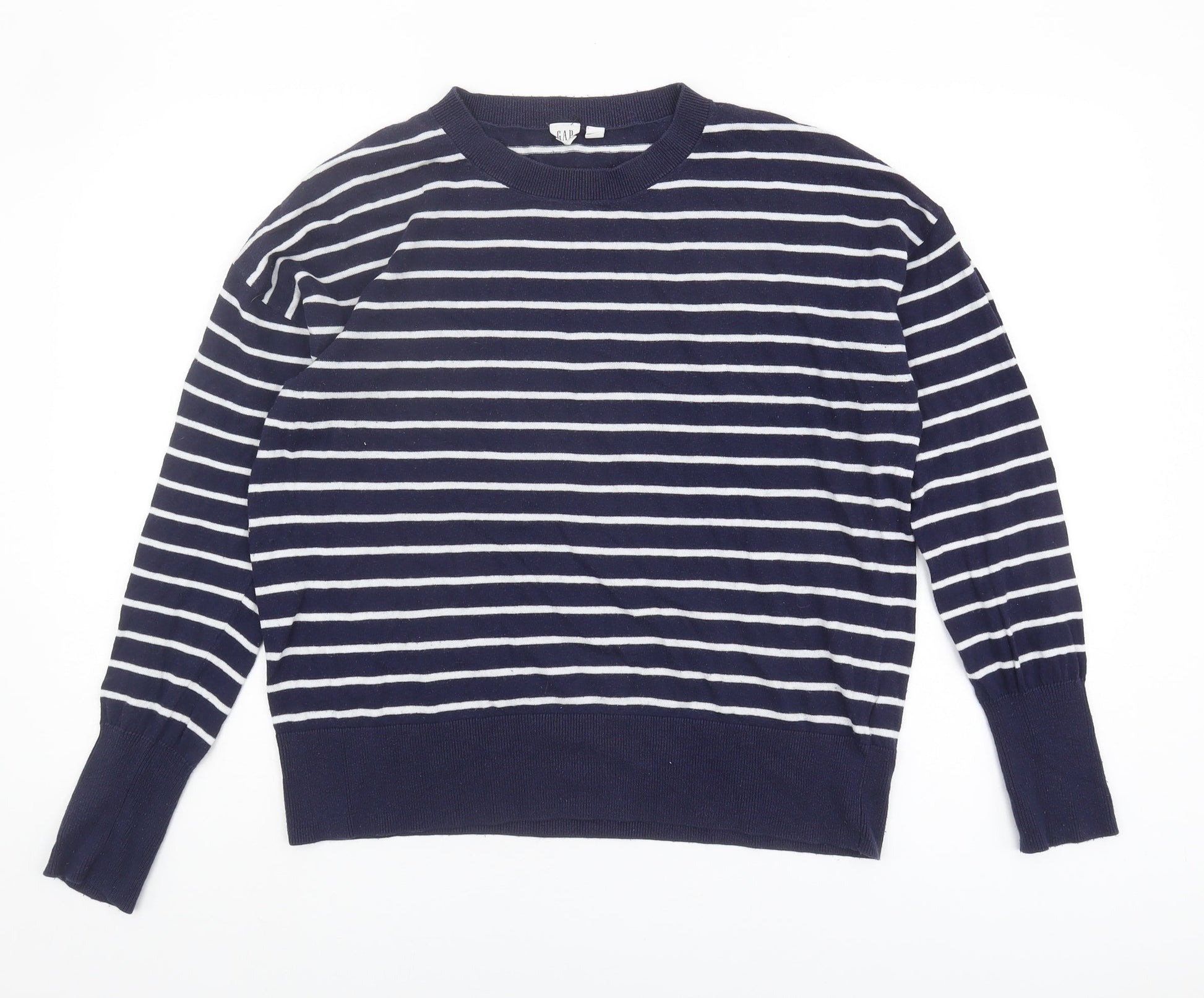 Gap Women's Blue Striped Pullover Jumper, Size L