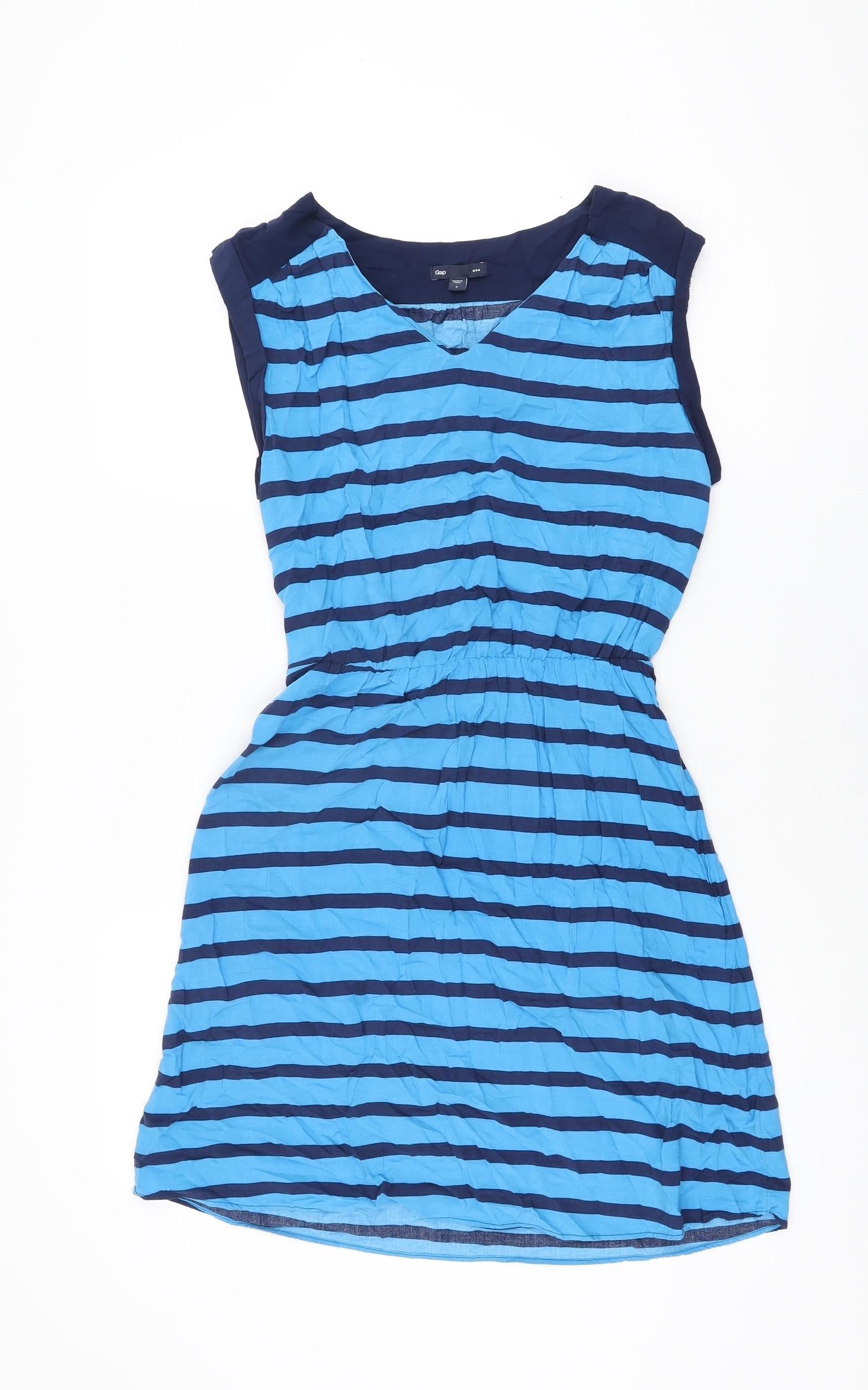 Gap Womens Blue Striped Rayon Skater Dress Size S V-Neck Pullover