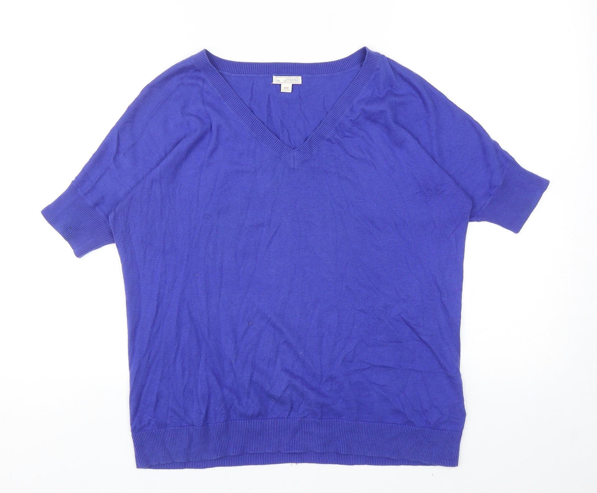 Gap Womens Blue V-Neck Cotton Pullover Jumper Size XS