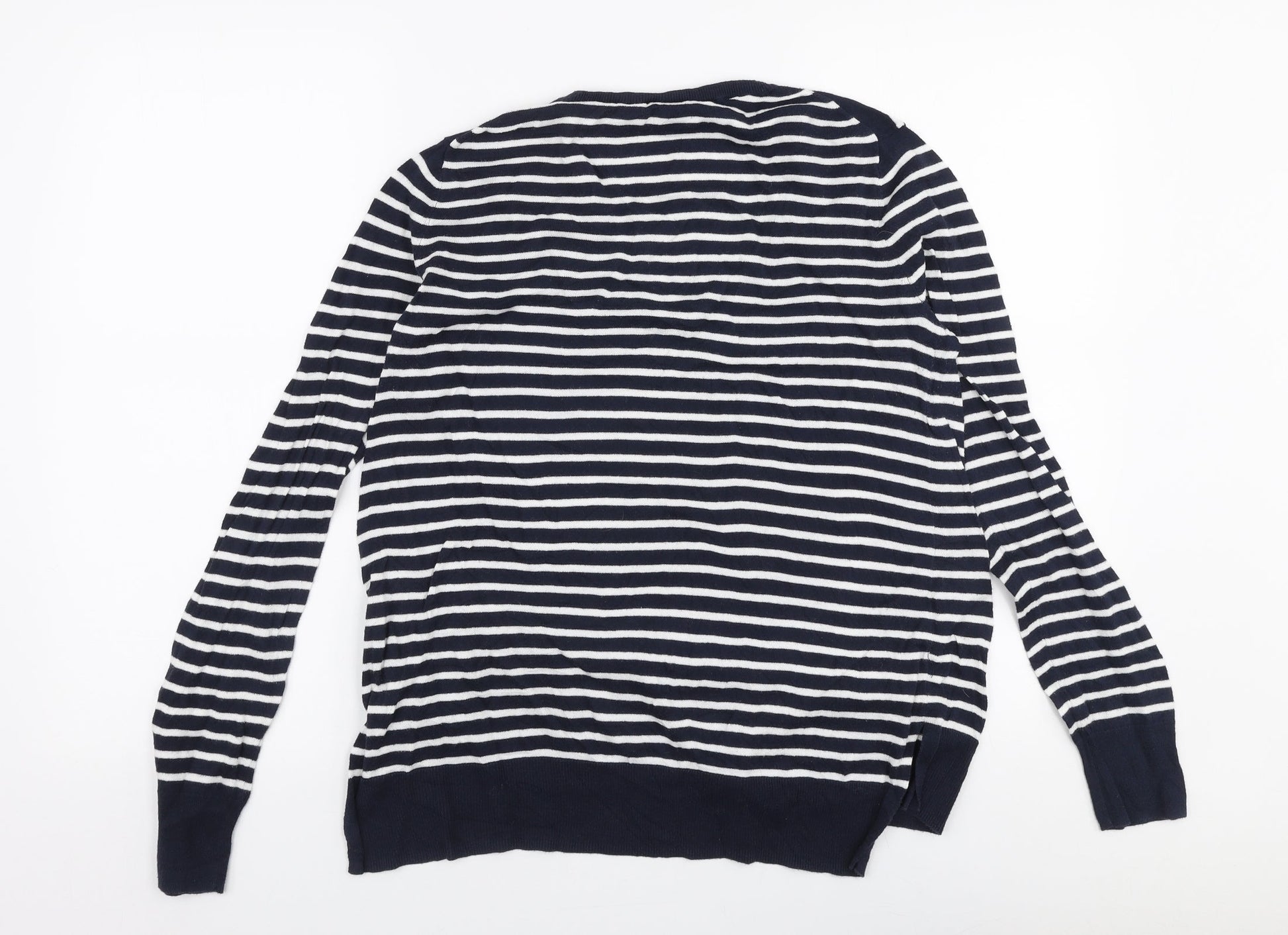 Gap Womens Blue V-Neck Striped 100% Cotton Pullover Jumper Size M