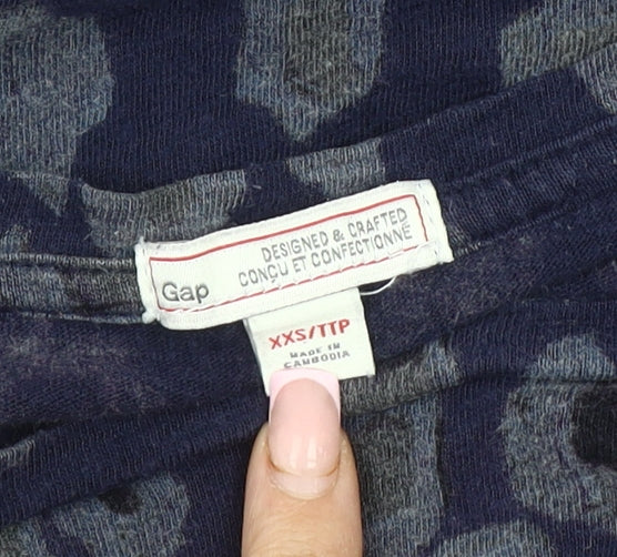 Gap Women's Blue XXS Boat Neck Animal Print Top