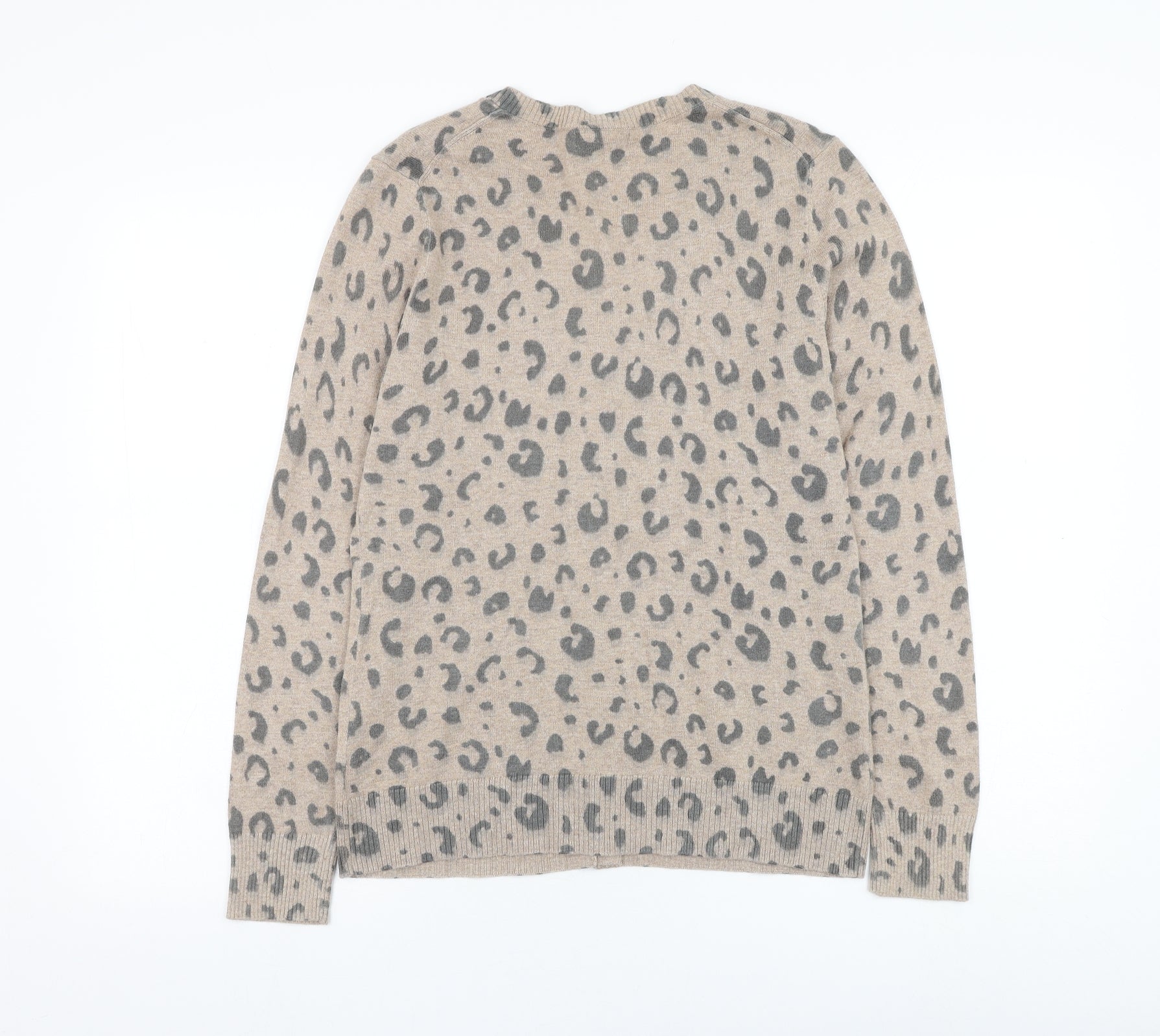 Gap Womens Brown Round Neck Animal Print Polyester Cardigan Jumper Size M