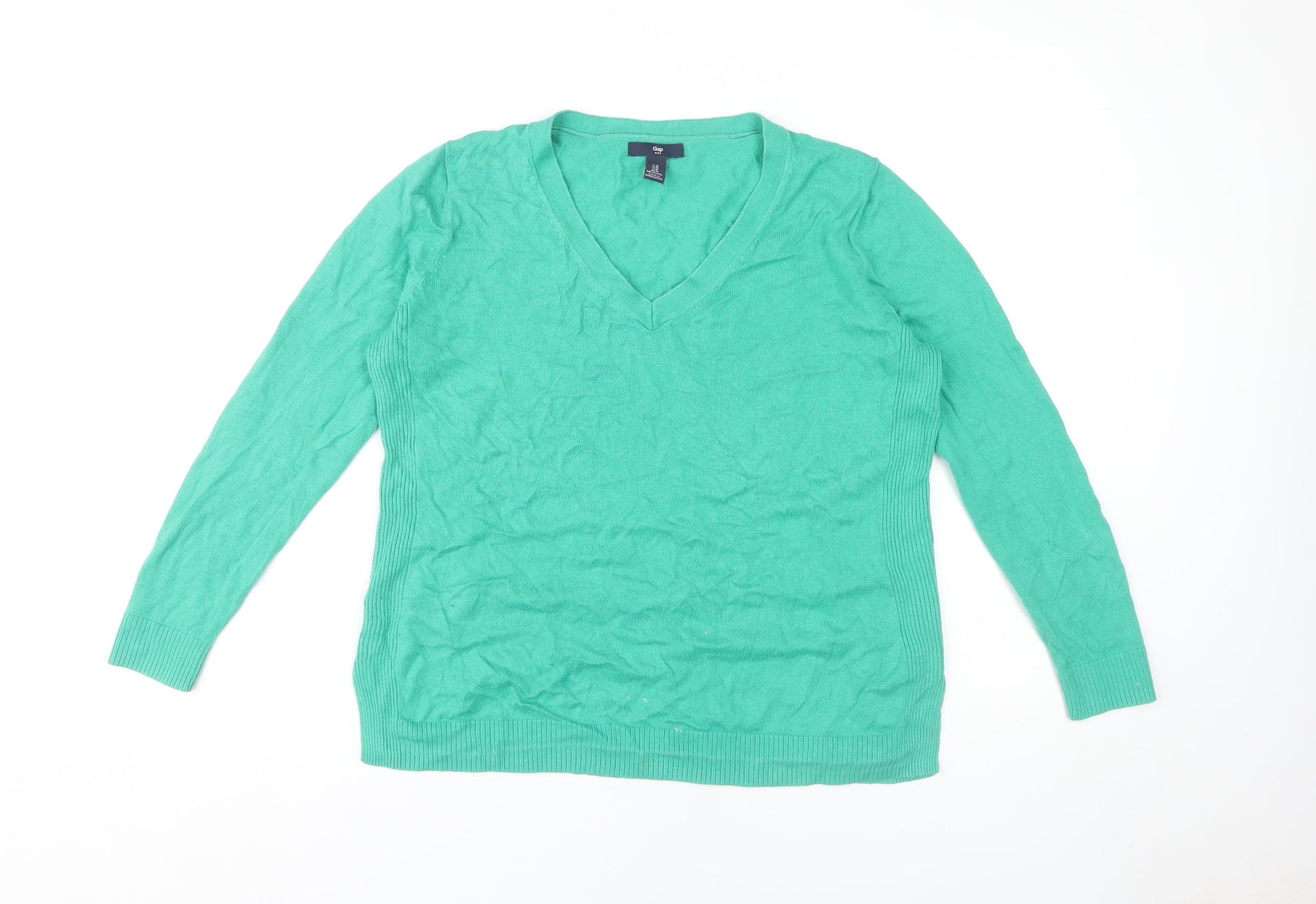 Gap Women's Green V-Neck Pullover Jumper in M, Casual